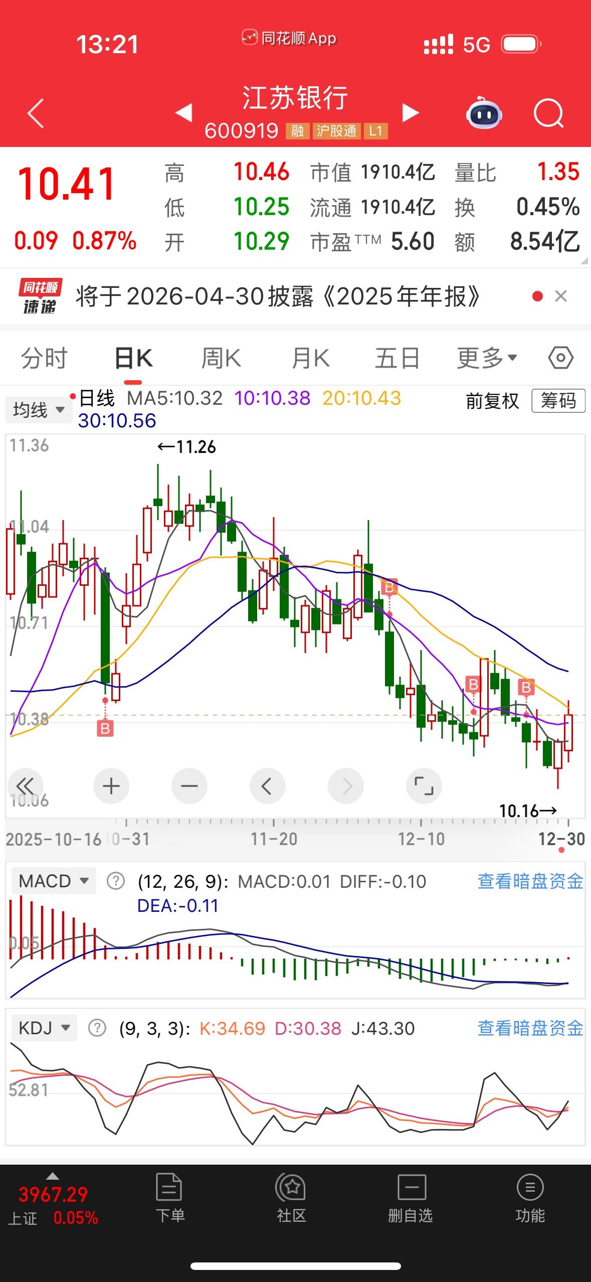 小江表现不错! 果然不负众望,小江股价在10.2附近有支撑,该拉起就拉起。 大家还在关注会不会中期分红,我认为会的。招行昨天公告中期分红,大家会跟上的。 不过,我对于是否中期分红并不在意。管理层可根据经营需要来决定,反正都是要给股东的,一次两次没有区别。