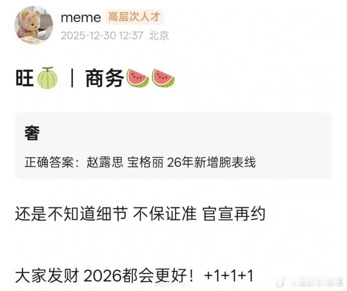 商务🍉赵露思新增宝格丽腕表线!我吃!