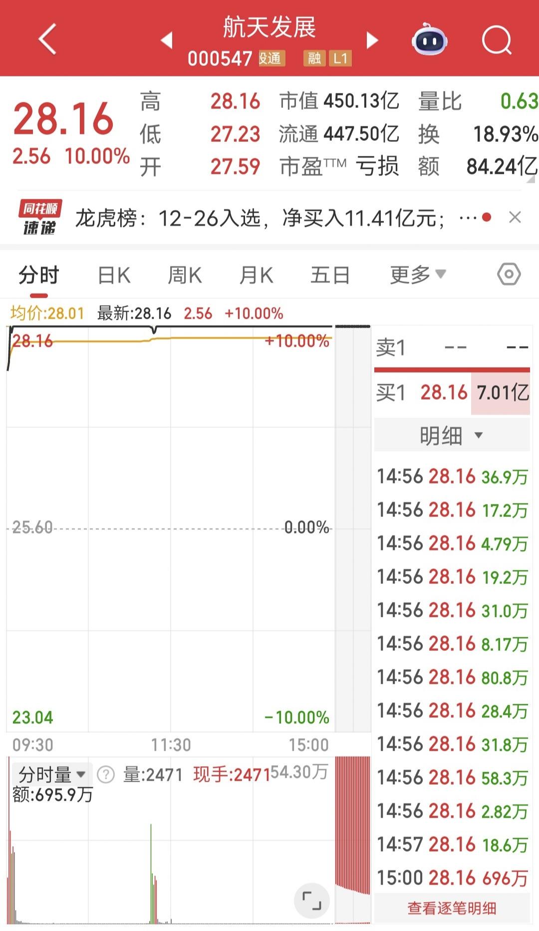 余哥7个亿猛干龙头: 今天航天发展开盘快速涨停。 盘后的龙虎榜炸了,榜一大哥东吴证券苏州相城大道爆买7个亿。 昨天7个亿尾盘竞价压异动,今天板上又买回来,让利7000w,的确大格局。 这个席位很陌生,大家都在传是新生代游资余哥。不管是谁都是一战成名! 游资 余哥