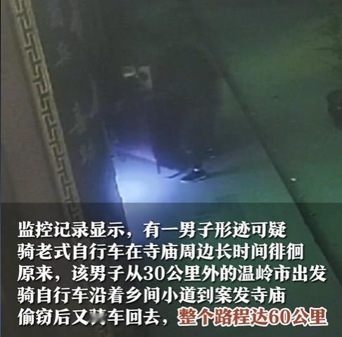 荒唐又可笑!浙江台州一男子盯上寺庙功德箱,竟连夜骑自行车往返 60 公里作案,到头来偷得不多,反倒把自己送进了看守所! 台州黄岩一寺庙两个功德箱夜间遭暴力撬盗,箱体满是撬痕,箱内善款被一扫而空,寺庙管理者第一时间报警。民警调阅寺庙及周边监控发现,案发凌晨,一名戴帽穿深色外套的男子,骑着老式自行车在庙外反复徘徊,形迹十分可疑。 深挖线索后真相浮出,该男子蒋某此前偶然路过寺庙,留意到功德箱便动了歪念。事发当晚,他备好衣物和撬具,从 30 公里外的温岭老家摸黑出发,一路骑车赶往黄岩寺庙,潜入后撬开功德箱偷走全部零钱,得手后又连夜骑车 30 公里折返,来回足足跑了 60 公里。 12 月 17 日,民警在蒋某出租屋将其抓获,当场搜出作案衣物、撬具和剩余赃款。原来他偷的多是一元硬币,总共才 3100 多元,仅花了 300 余元就落网。蒋某坦言,想着骑得远、地方偏,能躲开追查,殊不知全程都被监控记录。 目前蒋某因涉嫌盗窃罪被依法刑拘,案件还在进一步办理。费力奔波 60 公里,偷这点小钱触犯法律,实在得不偿失。