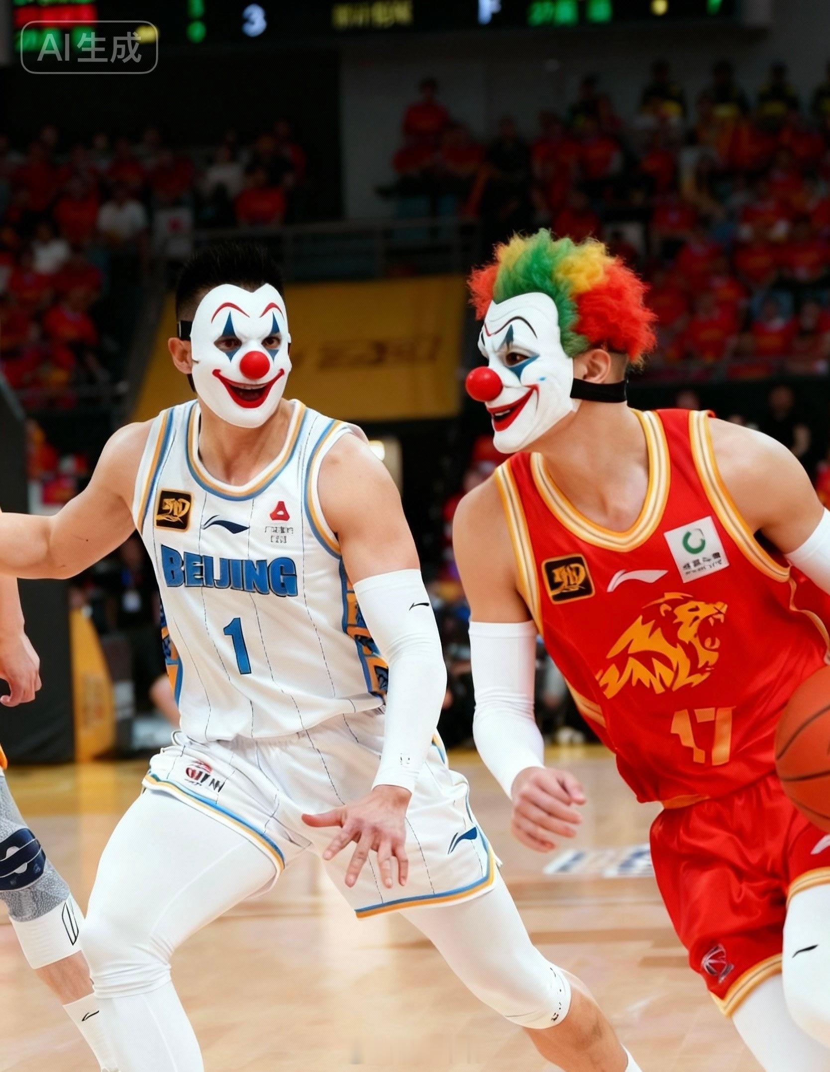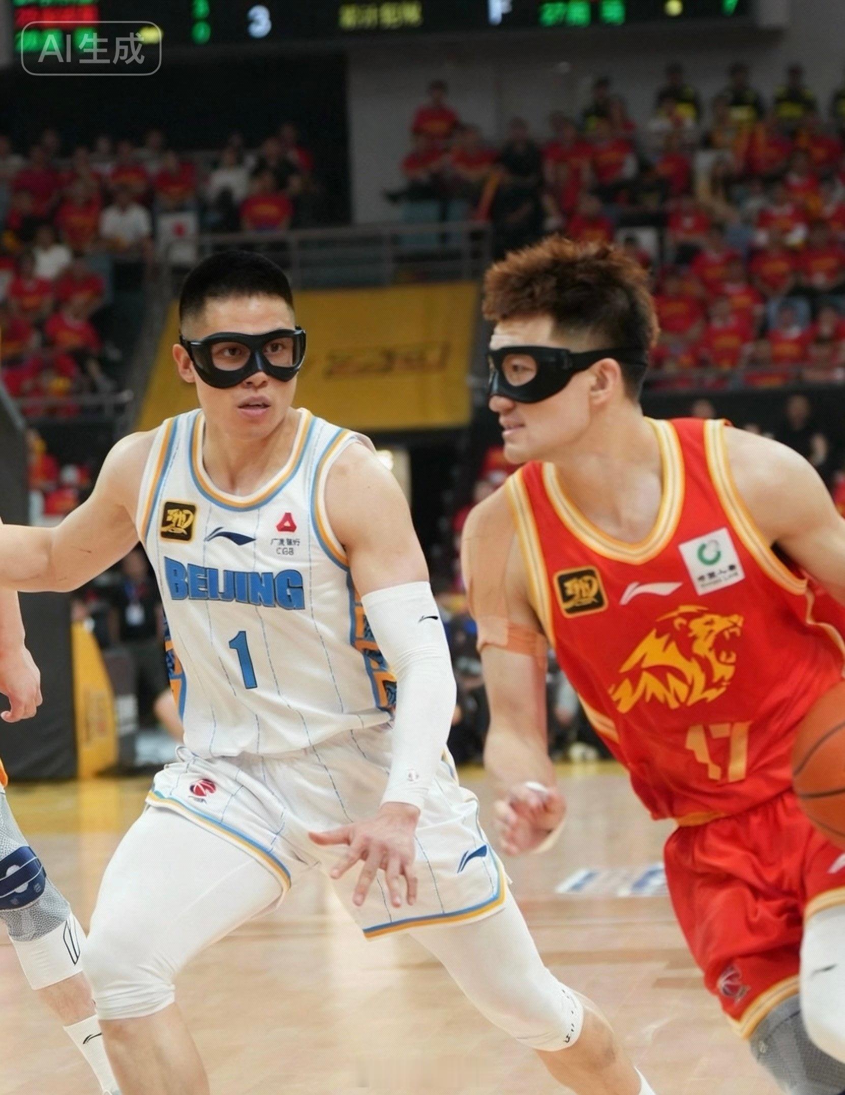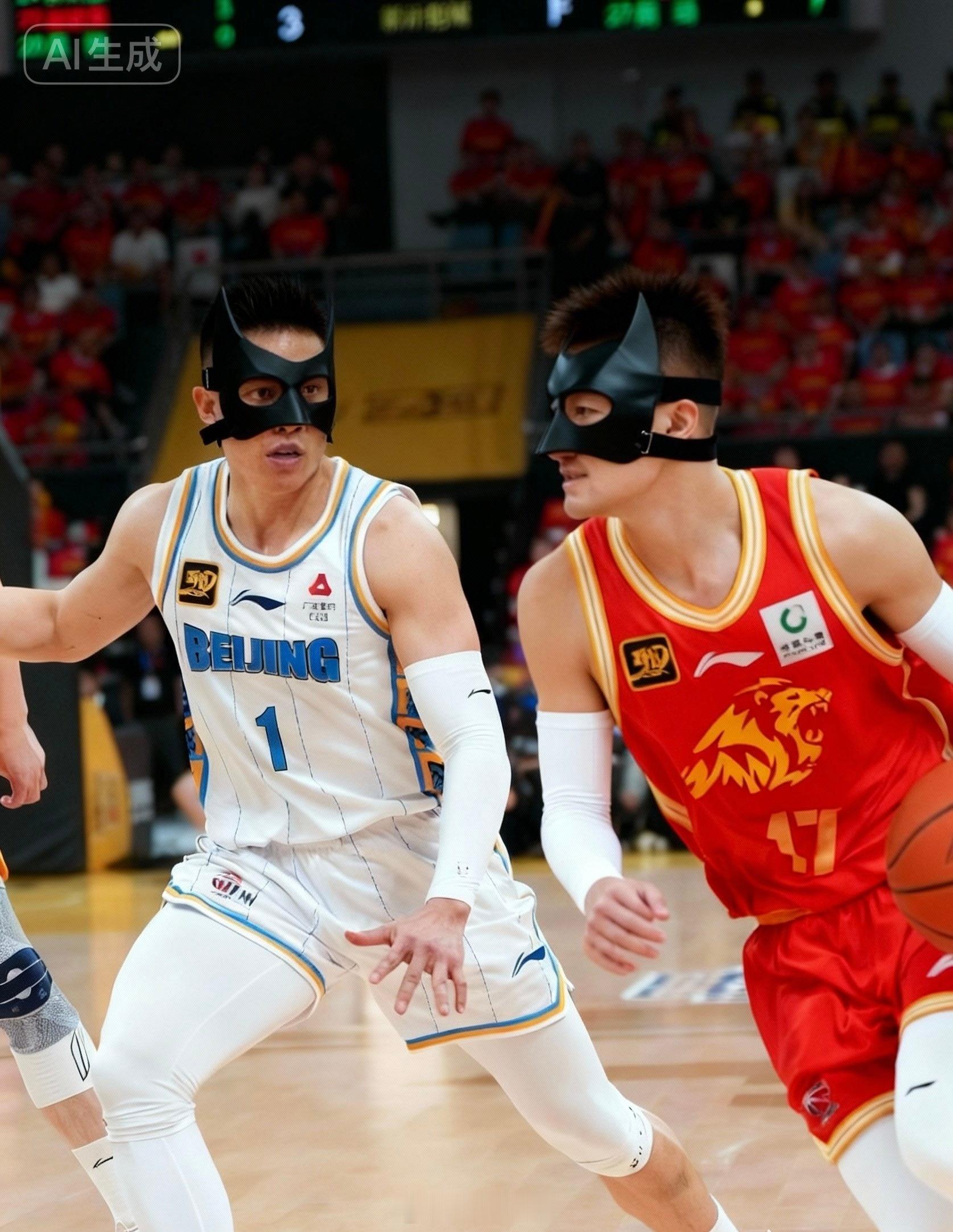 北京男篮vs广厦男篮 原本娱乐了一下,准备了几张对位面具图,哈哈踩场还问了下孙总,他还让我看了看他的鼻子,还是肿着的。希望他俩早日摘掉面具!