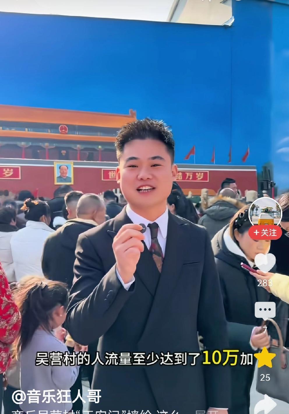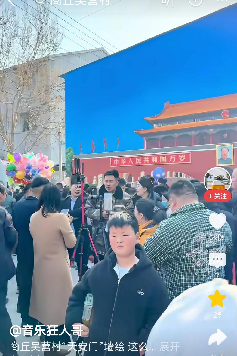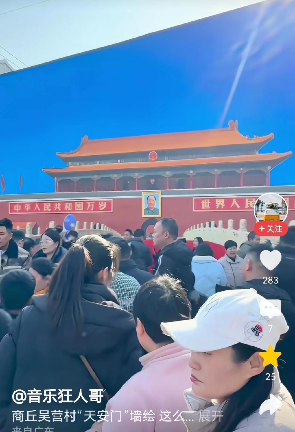 今天吴营村,人流量超10万 刚刚一个博主发视频,吴营村“天安门墙头画”前人山人海,人声鼎沸。 今天,吴营村的人流量至少超过10万。 从画面看,给人一种错觉:仿佛这就是北京天安门。一样的北京,一样的天安门,一样的人头攒动。 吴承言,一支笔,圆了乡村老人去北京打卡天安门的美梦! 吴承言,一幅画,打开了吴营村与外面世界的通道,吴营村旅游火了。 啥也不说了,为草根画家吴承言点赞👍👍👍👍👍👍👍👍👍👍👍