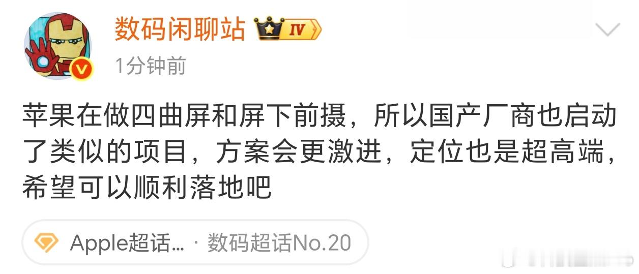 怎么着,安卓这边刚切回直屏,iPhone就要上曲屏了?而且还是四曲屏?如果iPhone真做了曲屏,安卓这边肯定会跟,不用怀疑,其实我觉得四微曲屏挺好的,这几年用的都挺顺手。