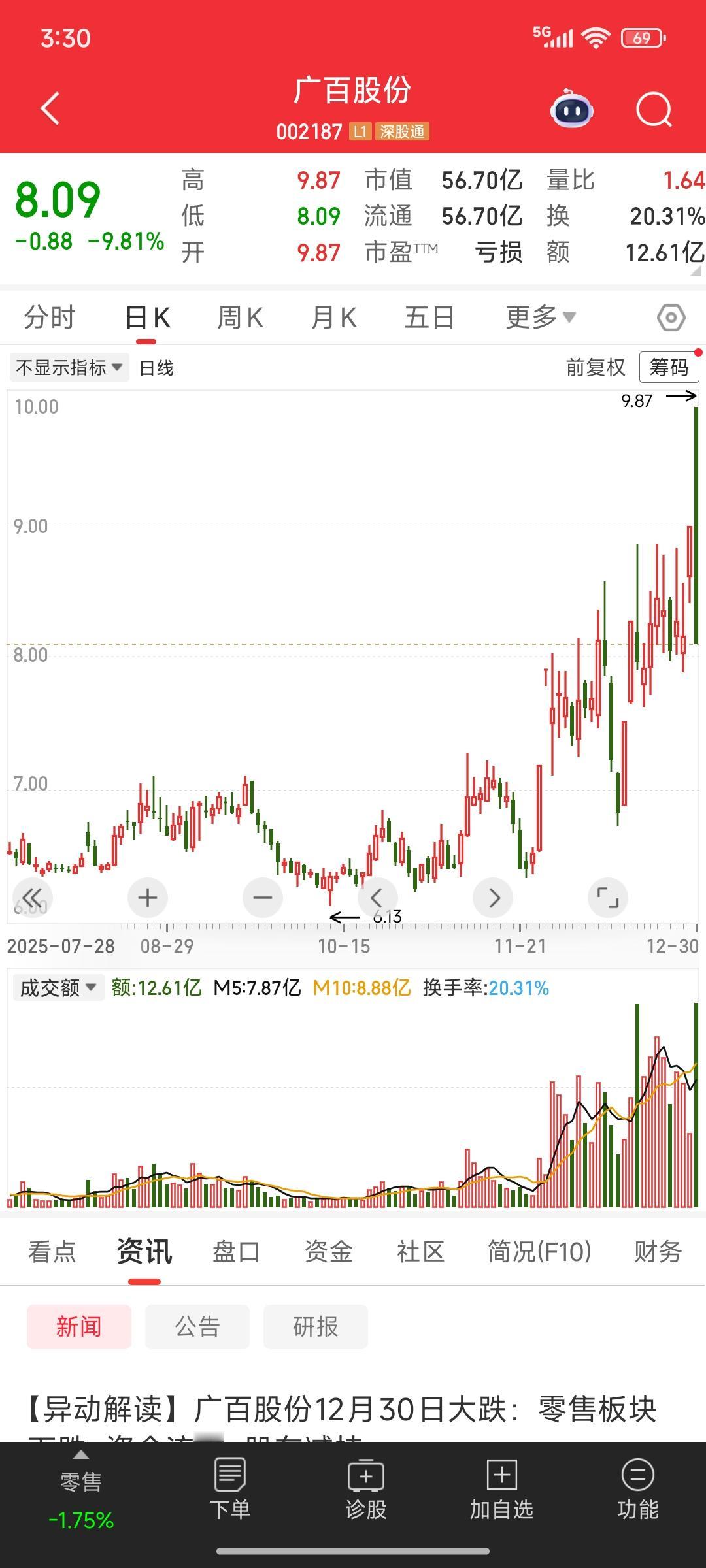 A股今天最惨的票诞生了 天地板大阴线从天而降,防不胜防 该票集合竞价一字涨停,成交额4864.7万 有这么多资金去顶一字,大超预期了 本以为能稳稳封住涨停 没想到开盘后直线跳水 可以看到资金承接力度蛮强的 可惜没有大佬点火,最终尾盘逼近跌停 打板资金是最惨的,当天浮亏近20% 只能等明天按计划止损了 保持乐观心态吧
