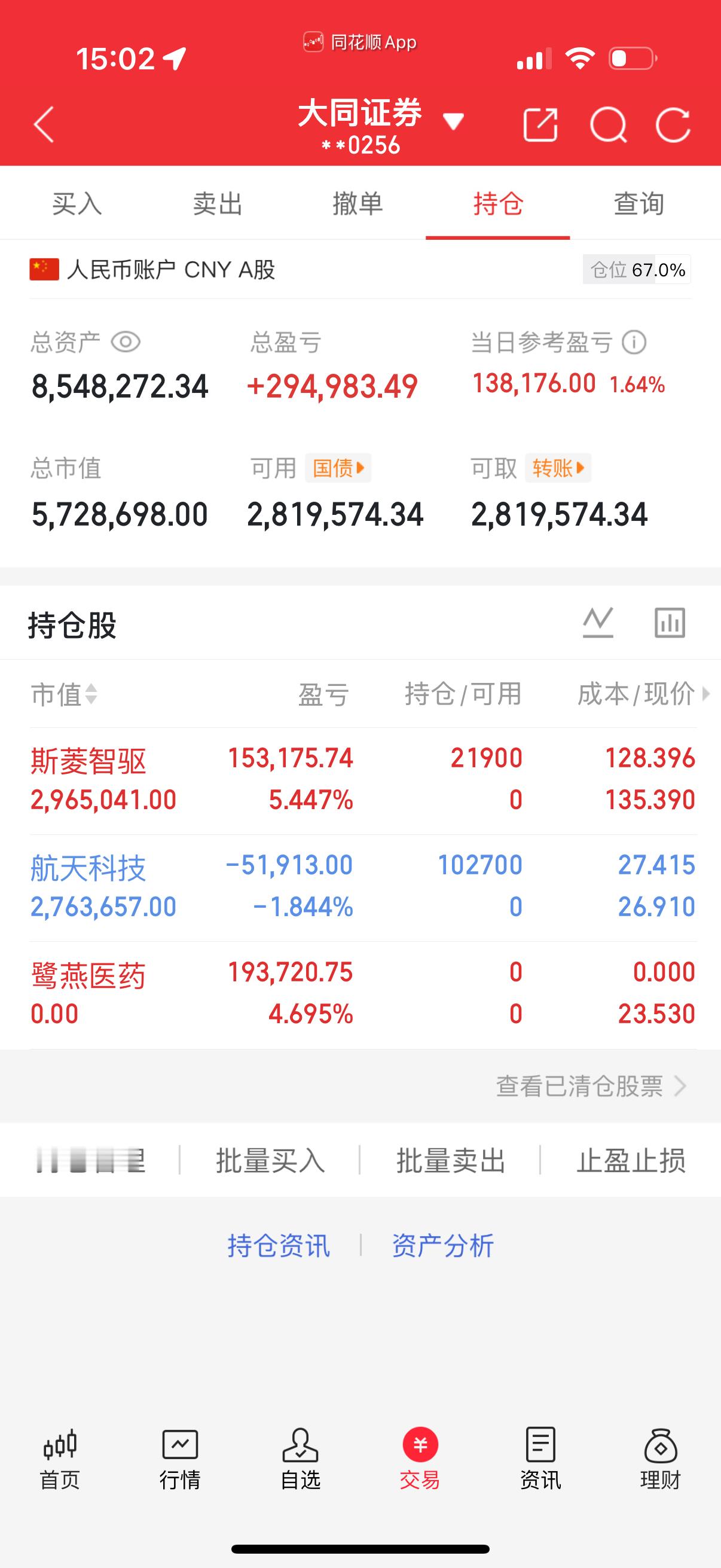 鹭燕医药卖早了,不过我不贪心,有得赚就行了,今天的新仓斯菱智驱,航天科技,明天继续给力冲冲冲