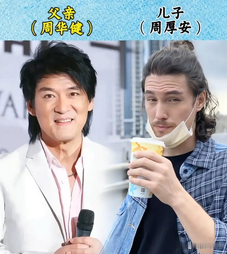 演艺圈内的这几对父子,真不像是一个模子刻出来的。 父亲英俊潇洒,风度翩翩,颜值是人中龙, 儿子长相超过父亲的很少,有的长得比爹老。 钟镇涛,人称“潇洒哥”,事业、婚姻经历过大起大落,在破产、离婚的时候,一个叫做范姜的女孩,走进他的生活中,变卖财产帮助他翻身,直到他61岁才与相恋了17年的范姜步入婚姻的殿堂,此时他们的儿子钟嘉俊已经不小了,没有父亲帅,五官像母亲。 吕良伟,八九十年代成名的香港演员,结过三次婚,前两位妻子都是港姐,周海媚和邝美云,两段婚姻都没有孩子,三婚娶了内地的富婆杨晓娟,婚后育有一个儿子吕善扬,寓意为扬名立万的意思,儿子胖乎乎的很有福相。 周华健,名不见经传的时候娶了一位美国女孩康粹兰,妻子给他生了一儿一女,儿子周厚安30多岁长相老成,遗传了父亲唱歌的天赋,曾和父亲一起表演。