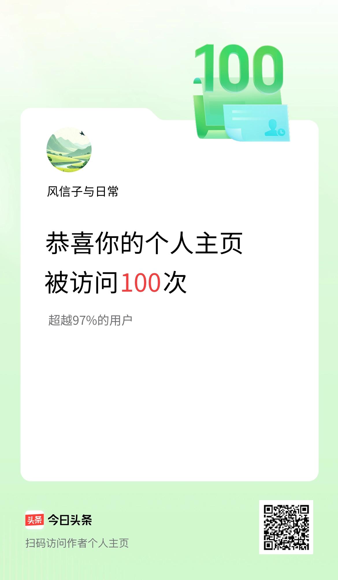 我的头条个人主页被访问100次啦!