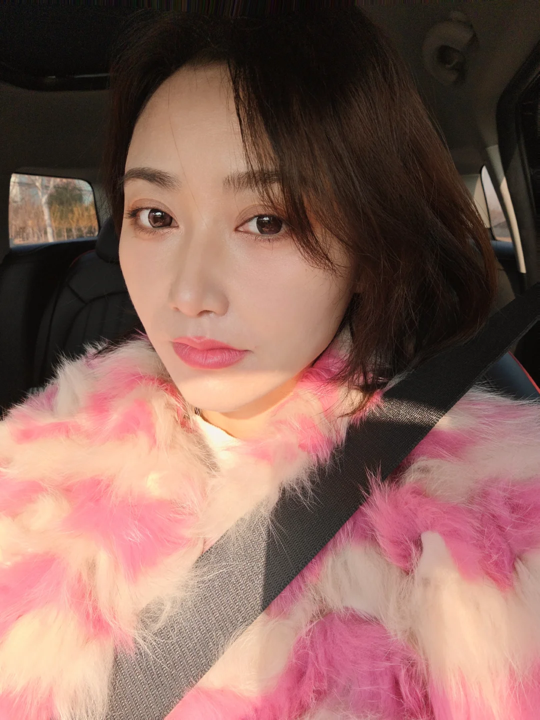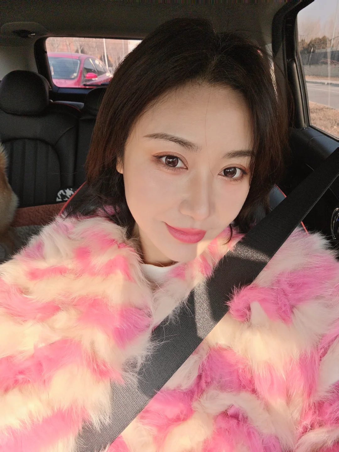 最近喜欢上嫩粉色口红💄 和我这件拼接皮草颜色好搭 用腻了焦糖色/栗子色 粉色显得气色很好👍🏽