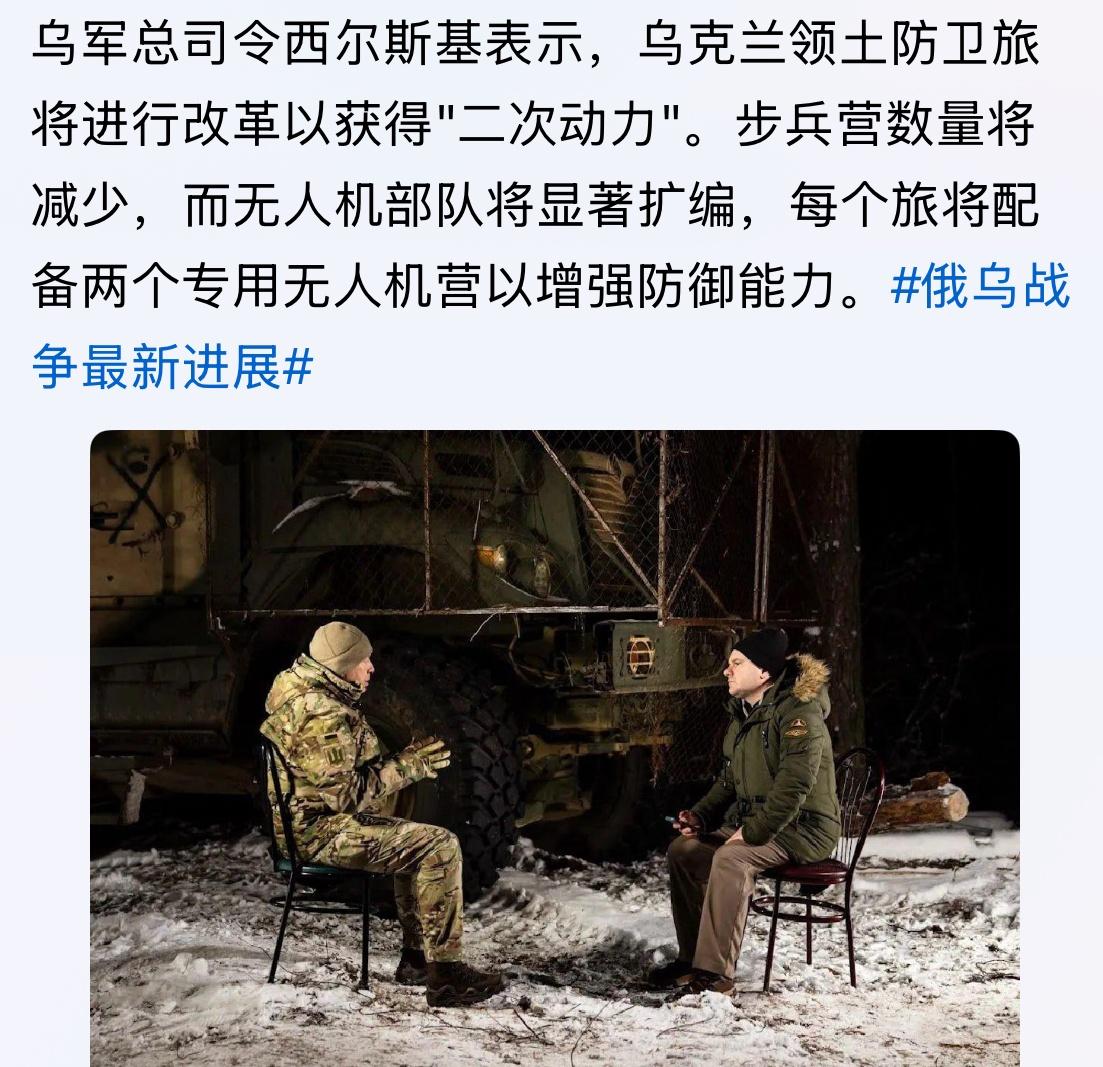 是啊,现代战争能用机器代替的决不用驴马! 乌军总司令西尔斯基表示,乌克兰领土防卫旅将进行改革以获得"二次动力"。俄乌战争