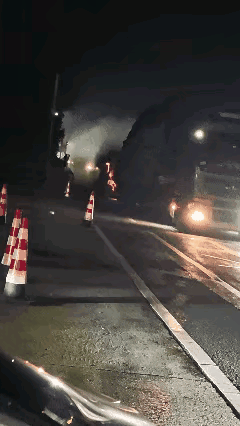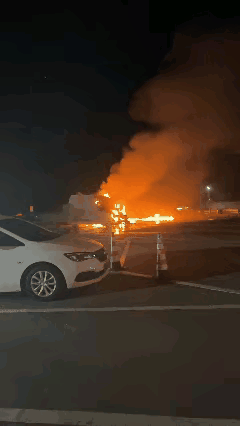 湖南邵阳一高速服务区附近,一辆小车起火燃烧被大货车拖行,事发路段没有监控,小车司