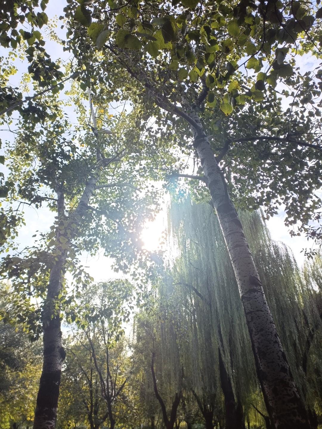 美好时刻,这里的风景简直太美了,金光闪闪的树木,蓝天白云与碧蓝湖水呼应,美极了