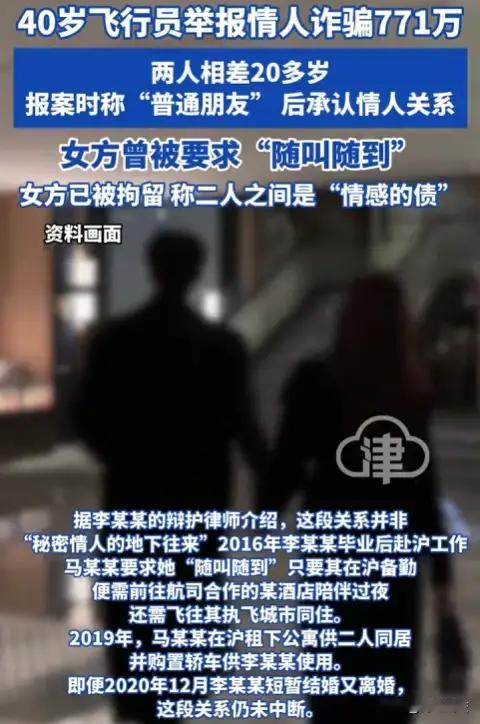 上海,40岁飞行员马某,结识了18岁女大学生李某,二人发展成不正当男女关系,马某为维系关系,给李某租公寓、买轿车,5年内转款700多万。11年后,马某手写700万对账单让李某签字,两次起诉她还钱又两次撤诉,还隐瞒情人关系。第二次撤诉前17天,马某报警称李某诈骗。李某则称二人是非正常男女关系,钱是包养费。 (来源:红星新闻、津云、长江云新闻) 在这个看似平凡的城市角落,隐藏着一段令人震惊的“爱情”故事,却在时间的推移中逐渐变质,揭示了人性中最复杂、最令人扼腕的角落。40岁的飞行员马某与18岁女大学生李某之间,究竟是一段错综复杂的情感纠葛,还是一场早已埋下隐患的“金钱游戏”?这背后,折射出的是现代社会中“爱情”与“利益”的模糊界限,也让我们不得不反思:在这个利益至上的时代,情感的纯粹还能剩下多少? 回望这段关系的起点,或许有人会说:年轻的李某被成熟男人的“关心”所吸引,马某的付出让她感受到前所未有的安全感与被需要感。马某为了维护这段关系,不惜花费巨资,租公寓、买豪车,转款累计超过700万。这一切,似乎都在证明一件事:金钱可以成为爱情的“润滑剂”。但真的是爱情吗?还是一种被包装得天衣无缝的利益交换? 其实,很多人都曾在青春的迷茫中,误把“被关爱”当作“爱情”。李某或许一开始也以为,这只是一个成年男子对她的“特殊关照”。但随着时间推移,金钱的介入逐渐模糊了彼此的界限,情感变得复杂而模糊。 时间来到第11年,马某竟然手写700万的“对账单”,让李某签字。这个细节令人震惊:一份“账单”竟然成为了关系的“证据”或“筹码”。而在随后的两次起诉与撤诉中,隐藏着更多的疑问:这是感情的破裂,还是一场精心设计的“博弈”?更令人匪夷所思的是,马某还隐瞒了自己与李某之外的“情人关系”,这是否说明,这一切早已失去了最初的“纯粹”? 李某的辩词也令人深思:二人曾是“非正常男女关系”,钱只是“包养费”。这是对社会普遍认知的冲击,也是对“情感”与“利益”界限的挑战。究竟是“爱情”还是“交易”?在金钱的世界里,似乎没有绝对的纯粹。 这起事件让我们不得不反思:在现代社会,金钱与情感的关系究竟该如何界定?当“爱情”变成“交易”,我们还能相信任何一段关系的纯粹吗?更何况,马某作为一名飞行员,代表着社会的某个阶层,他的行为是否反映出某种“职业道德”的缺失?而李某,作为一名年轻的大学生,她是否也在这场“利益游戏”中迷失了自我? 这不仅仅是两个人的故事,更是社会价值观的折射。我们是否也在无形中接受了“金钱万能”的暗示,逐渐淡忘了“情感的纯粹”?在这个利益至上的时代,信任变得脆弱,情感变得脆弱,人与人之间的界限也变得模糊。 这起案件引发了社会的广泛关注,也激起了公众的热议:我们是否还相信“爱情”的纯粹?还是早已被金钱绑架?有人说:这只是个别案例,但细细想来,是否每个人都在无形中参与了一场“利益交换”的游戏?我们在朋友圈炫耀的“幸福”,背后是否也藏着某种“交易”的影子? 更令人担忧的是,事件中涉及的法律与道德问题:当“诈骗”与“包养”交织,法律的界限在哪里?道德的底线又在哪里?这不禁让人深思:在这个充满诱惑的社会,我们如何坚守自己的底线?又如何在复杂的人性中找到一份真正的“纯粹”? 这起案件像一面镜子,映照出社会的浮躁与人性的复杂。它提醒我们:无论金钱多么诱人,情感多么脆弱,坚守内心的那份纯粹才是最难得也是最宝贵的。在这个充满诱惑的时代,保持一份清醒,懂得辨别“爱”与“利”,或许才是我们每个人最需要的修炼。 希望每一个读者都能在这场“爱情与利益”的博弈中,找到属于自己的那份真诚与坚守。毕竟,人生短暂,真正值得珍惜的,从来都不是金钱,而是那份纯粹的情感与内心的平静。 如果你觉得这篇文章引发了你的共鸣,欢迎留言分享你的看法。我们都在这个复杂的世界里,努力寻找那份属于自己的“纯粹”。飞行员爱情故事 上海情侣案 上海情人纠纷
