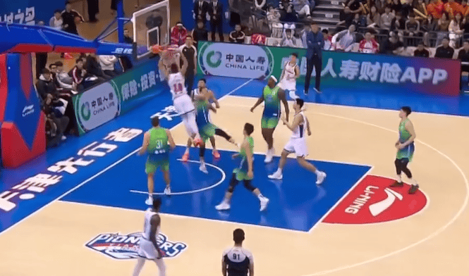 第二节比赛,奎因突破起飞滑翔双手暴扣,随后防守滑倒受伤被换下。