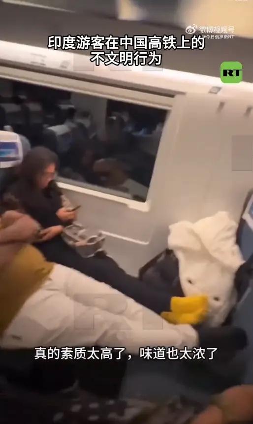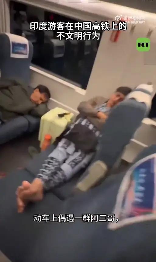 “滚回自己的国家去!”近日,四川成都,一男子刚上高铁,就闻到一股刺鼻的脚臭味,他四处打量了一下,发现一群印度人躺在座位上睡觉,不仅霸占了别人的位置,还把鞋子、袜子脱了!丝毫不顾及其他人的感受。网友:真当自己家了? 男子上前提醒对方穿上鞋袜、让出霸占的座位,可这群印度人只是瞥了他一眼,依旧自顾自躺着,完全没理会提醒。 周围乘客也被脚臭味熏得皱眉,有人试图跟他们沟通,却因语言不通,只能无奈地捂着鼻子往车厢另一头挪。 男子越想越气,情绪激动之下喊出了“滚回自己的国家去”的话,这话一出,车厢里的议论声分成了两派。 有人觉得这群外国乘客没素质,占座还不讲卫生,男子的愤怒情有可原,换谁遇上这事都得生气。 也有人认为男子的说法太偏激,就算对方行为不当,也不该用“滚回自己国家”这种带有歧视的话语指责。 高铁是公共空间,不管是哪国人,都该遵守乘车规则,可面对不文明行为,用偏激的方式回应也并非妥当。 有人说遇到这种事该找乘务员处理,而非自己上前争执,既解决不了问题,还可能引发更大的矛盾。 高铁脱鞋风波