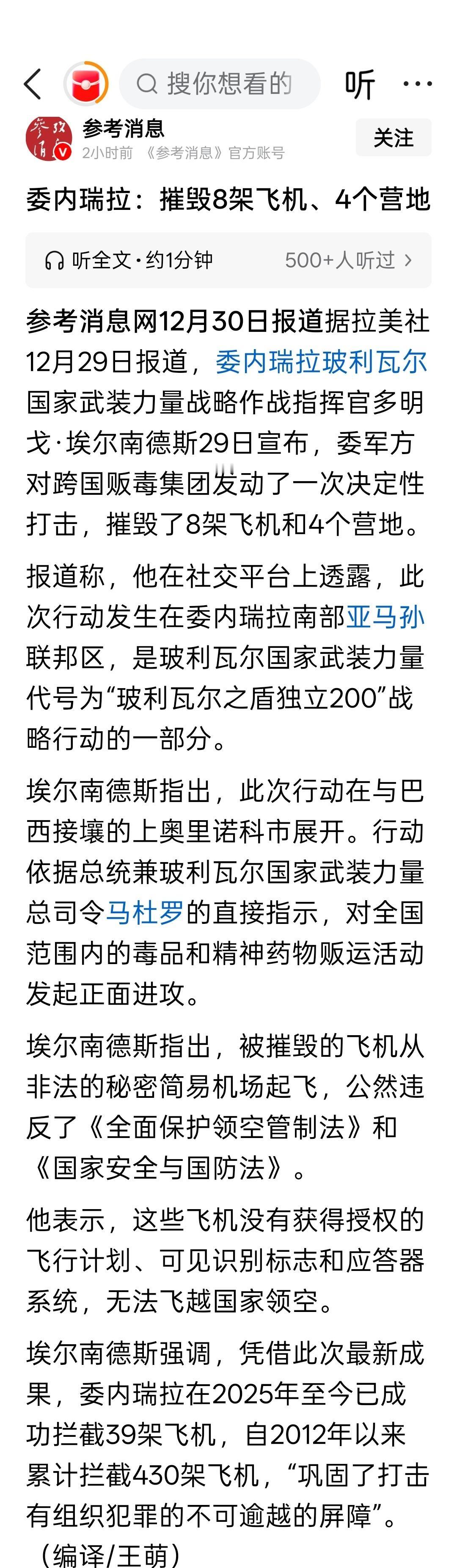 委内瑞拉:摧毁8架飞机、4个营地。出手打击贩毒集团了