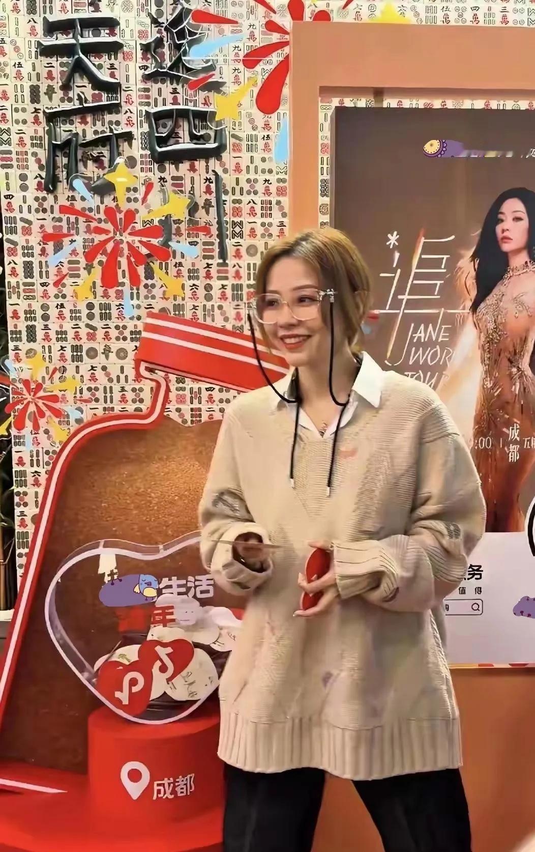 张靓颖成都街拍,随性穿搭太圈粉 张靓颖现身成都春熙路网红打卡街,这身穿搭也太会了吧! 米白色大廓形毛衣叠穿白衬衫,慵懒又有层次感,挂绳眼镜搭配低丸子头,随性中透着时髦感,整个人状态超年轻,完全看不出年龄感~ 果然美女的私服品味也在线,这种松弛感的穿搭真的太有魅力了!