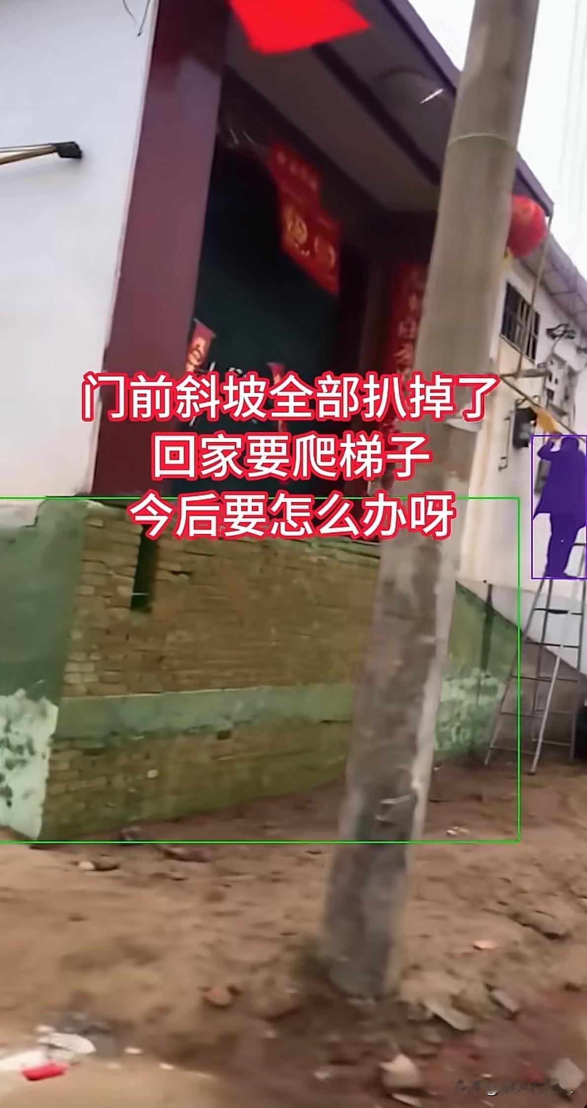 占用村里的公共道路,以为发网上就会引发网友的同情,真的是想多了! 最近一直刷到关于农村自建房的视频,发现不少盖房纠纷的起因,都是想多占面积,总觉得那块地是自己的,想怎么盖就怎么盖。 像图上的这位主包,她很委屈的表示要修路了,自己家门前的斜坡被扒掉了,想回家要爬梯子,她认为自己家被针对了。 但她没有想过那斜坡的位置是属于房子外面的村路,并不属于房子的面积,家家都这样占道,直接影响村里人的出行。 以前占道建斜坡没有人管,现在不让占道,就应该整改门口的出行设计,而不是怪村里不再让斜坡继续占道!