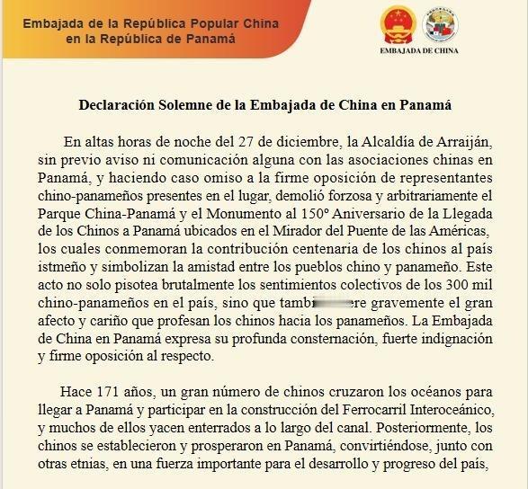 巴拿马政府做的太过分了,巴拿马阿赖汉市政府既不愿意同意当地华人社团自2024年起就多次协商公园修缮事宜,甚至承诺出资的申请,也没有接受中国驻巴拿马大使馆官方提出的翻修建议。反而执意在不提前通知、不进行任何沟通的情况下,悍然拆除中巴公园及华人抵巴150周年纪念碑。这也看得出,维护国家利益和华人权益,维护海外华人的历史脉络,光靠释放善意是远远不够的 这事说起来挺气人。巴拿马阿赖汉市政府这回干得太绝了,从2024年开始,当地华人团体就主动找他们谈公园维护的事,方案写得清清楚楚,还说钱我们出全包,结果呢,一次次碰壁,没个回音。中国驻巴拿马大使馆也正式提过帮忙翻新,同样没下文。突然间,12月27日深夜,直接带机械推了,整个过程没通知任何人,现场有华人代表在,也没管。 华人到巴拿马的历史可不短。1854年,第一批几百名华工坐船过来,帮着建跨洋铁路,那条件苦得要命,好多人就埋在运河边了。后来留下的,开店做生意,慢慢融入当地社会。现在巴拿马有30万华人后裔,大家都把他们当自己人。2004年,巴拿马官方认了这份贡献,定3月30日为华人日,同年华人社团自己筹钱,中国那边也支持,建了中巴公园和纪念碑,就在美洲大桥观景台那儿,俯瞰运河,碑上记着华人来150周年的事。这地方不是谁的私产,是国家公共遗产,象征两国人民来往。 阿赖汉市政府非要拆,说是结构有安全隐患,得预防性处理,还放了照片证明。可这借口站不住脚。华人团体早有工程报告,结构主体没大问题,就表面修修就行。他们多次递申请,想出资修缮,市政府不理。特许经营权2024年到期,本来续签谈谈就能解决,却拖着不办。市长佩尼亚尔瓦上台后,早放出风声要改造观景台,效果图里压根没这碑,明显有计划。深夜动手,没公告,没对话,现场拉警戒线挡人,这哪是安全维护,分明是故意避开舆论。 这举动伤了30万巴拿马华人的心,也让中巴民间情谊受损。光靠善意沟通,人家不领情,反而觉得你好欺负。维护海外华人权益和历史记忆,得硬气点,该抗议抗议,该维权维权。华人社团按当地法律走,理性但不退让,这态度对。 好在巴拿马中央政府反应快。总统穆利诺直接发声,骂这是野蛮行为,没任何正当理由,不可原谅。公共工程部、运河事务部、外交部都表态,划清界限,说这纯属地方政府自作主张。总统府下令文化部协调,立刻原址修复,还把碑列为历史遗产保护。总检察院启动调查市长渎职,程序违法可能面临刑事责任。多部门、政党、社会人士都支持彻查和重建,这说明国家层面重视多元历史,不想让地方行为坏了大局。 中国使馆声明态度坚决,要求彻查惩戒、原址修复。中国外交部也表达严重不满,已向巴方严正交涉。巴拿马社会舆论一边倒,反对拆除的声浪大。修复工作估计很快启动,这碑会回来,华人贡献抹不掉。说到底,小国在大国间平衡不容易,但尊重历史、保护少数族群权益,是基本底线。这事提醒大家,海外利益得靠实力和规则双管齐下,光示好不够,得让对方知道底线在哪。希望修复顺利,中巴关系别因地方闹剧受大影响。
