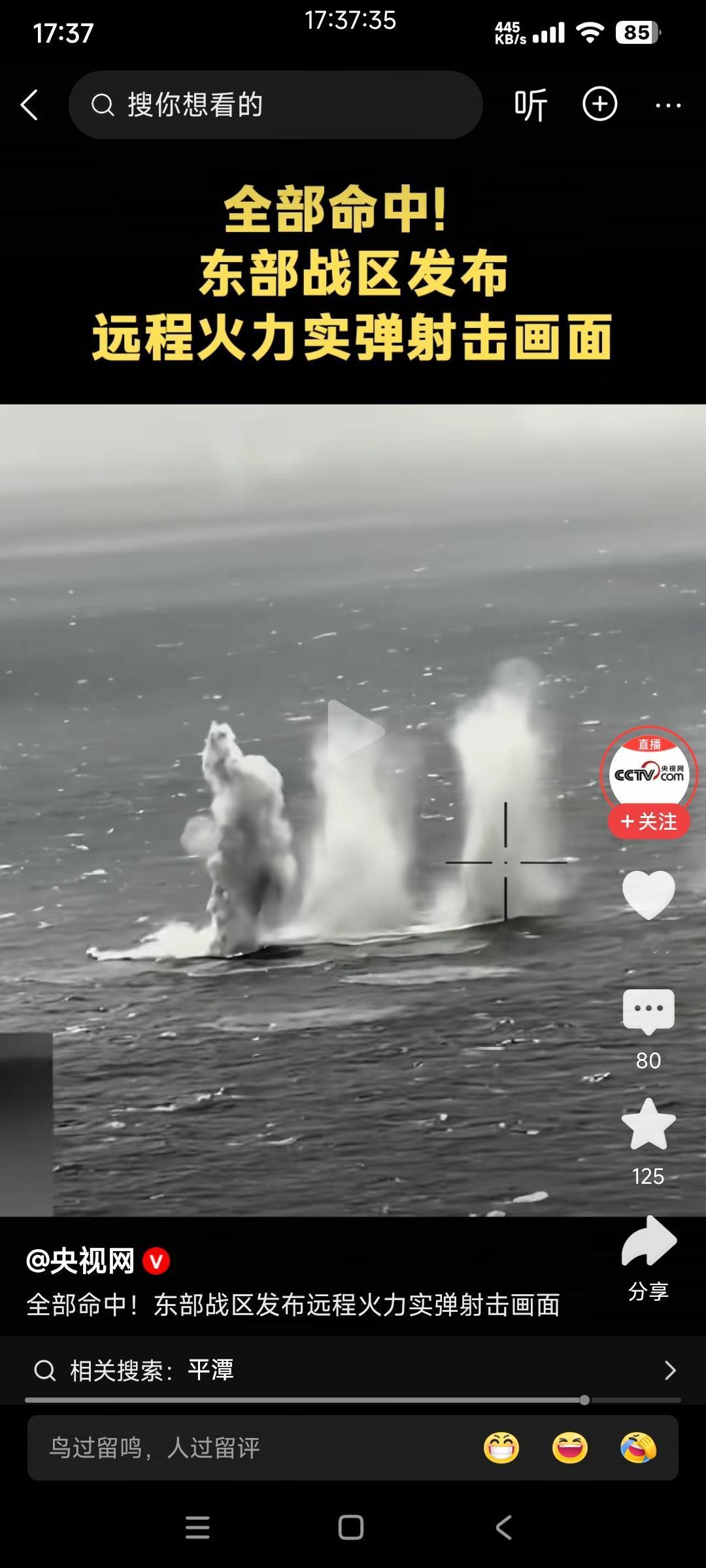 央视发布了东部战区远程火力实弹射击的画面 这段视频我反复看了好几遍 发现了几个重点 当下中国人民解放军的全程态知感知能力水平先进,导弹精度高。 从四面八方发射的远火都准确命中预定的目标。 远火都这么准还是海上目标这水平让我们直接放宽心。 一条船,落上一发就完蛋!一次集火打击基本这个区域就算结束了。 这是实力的展示,也是对宵小最好的震慑。