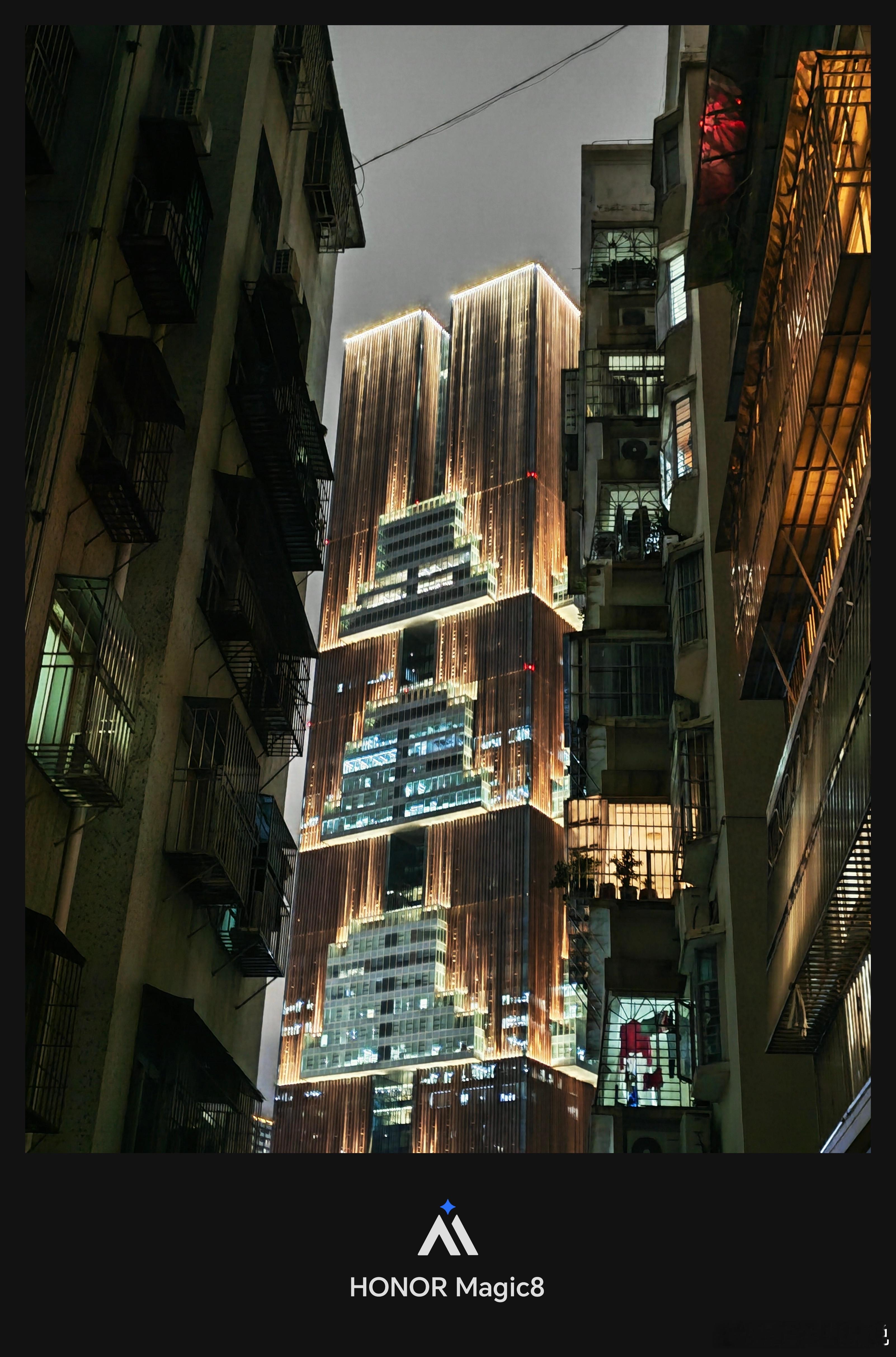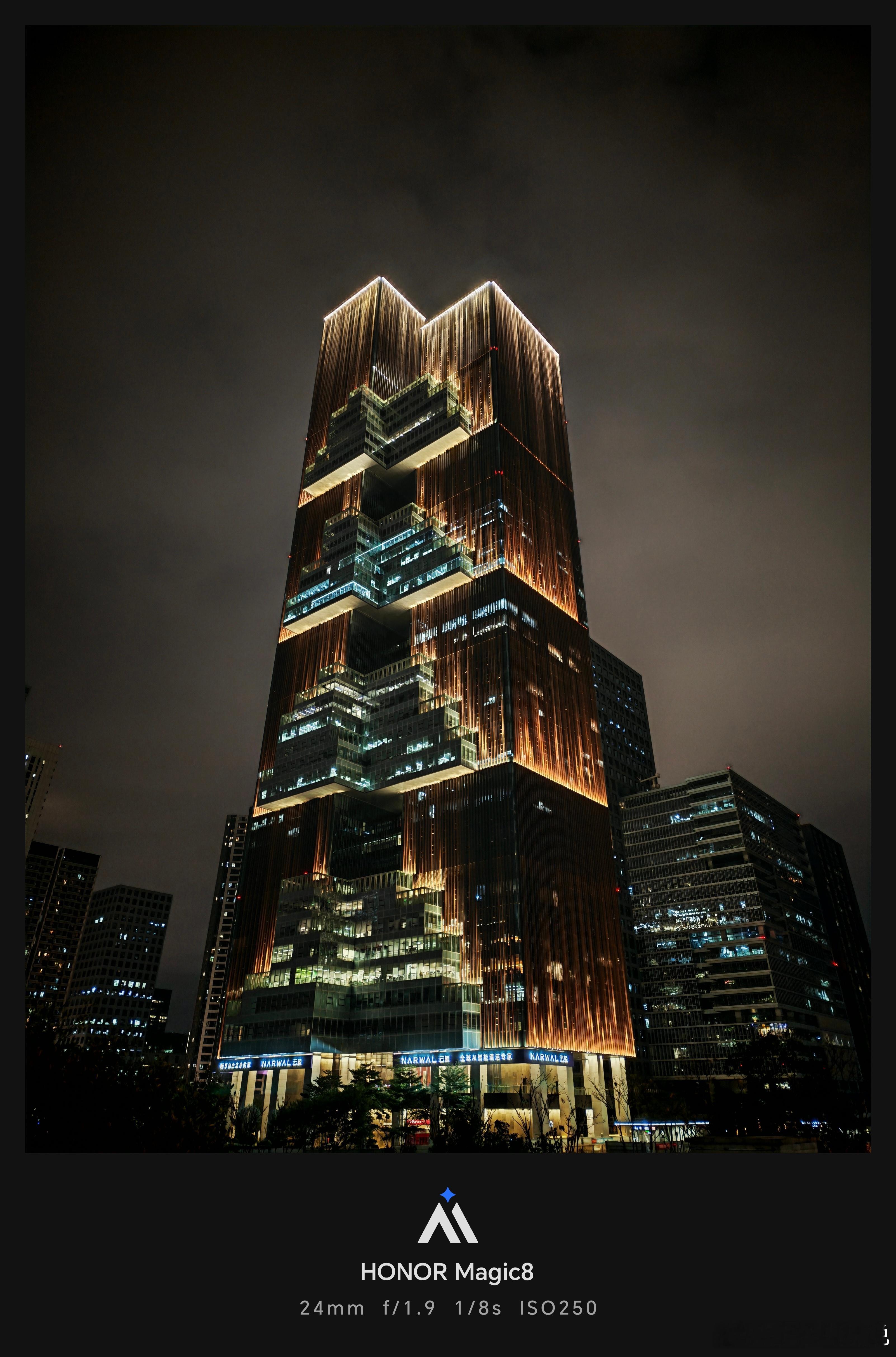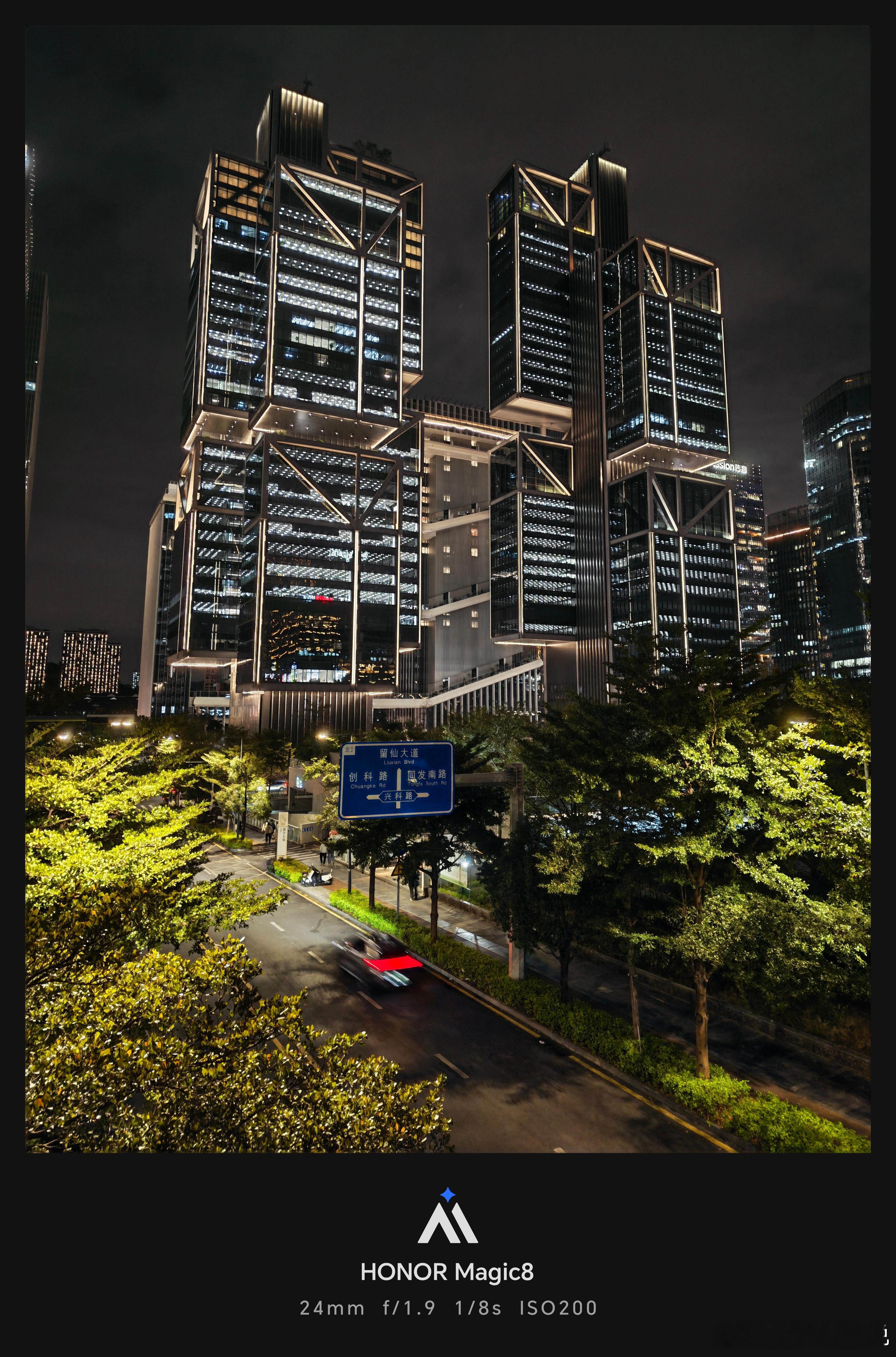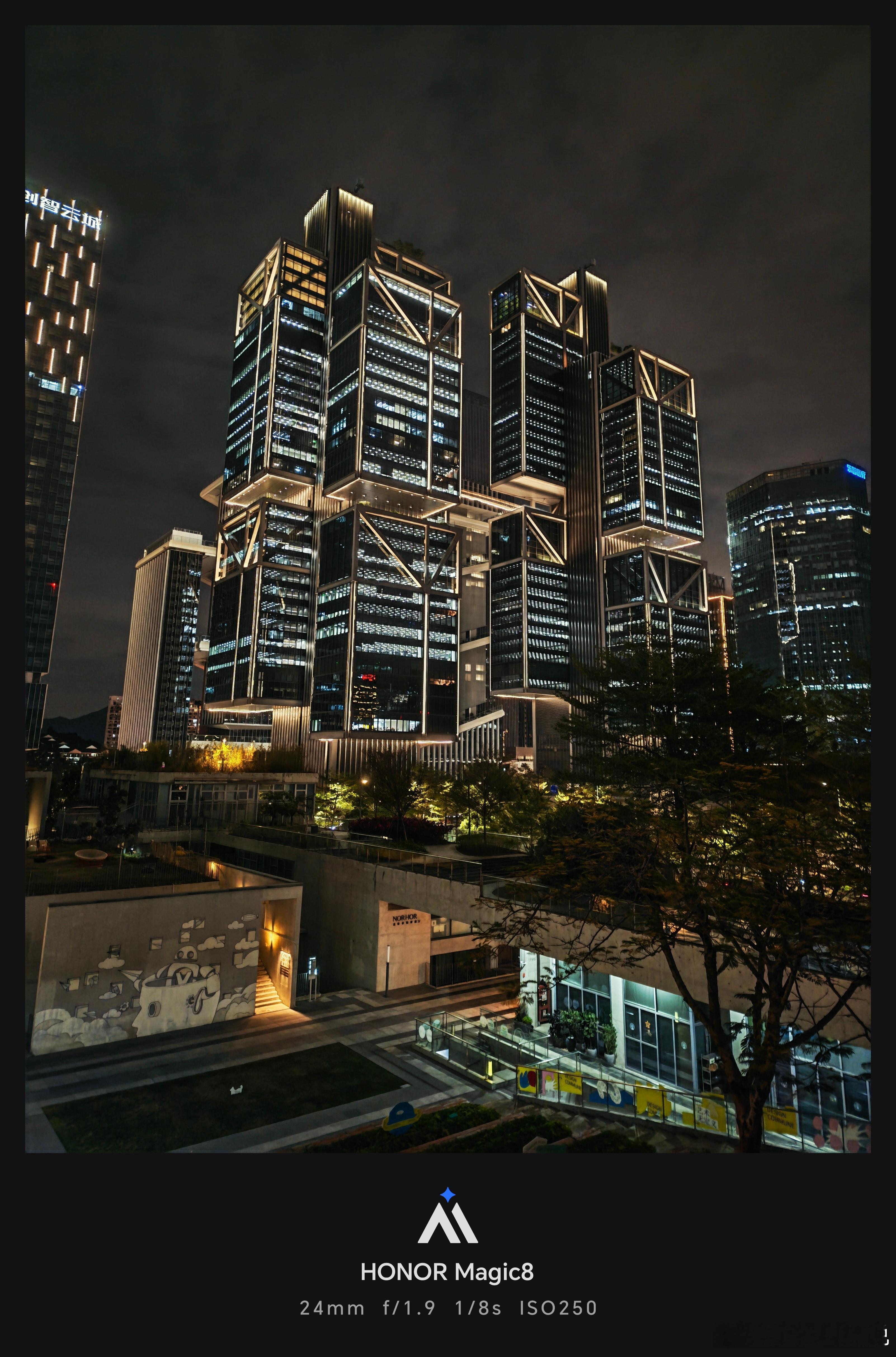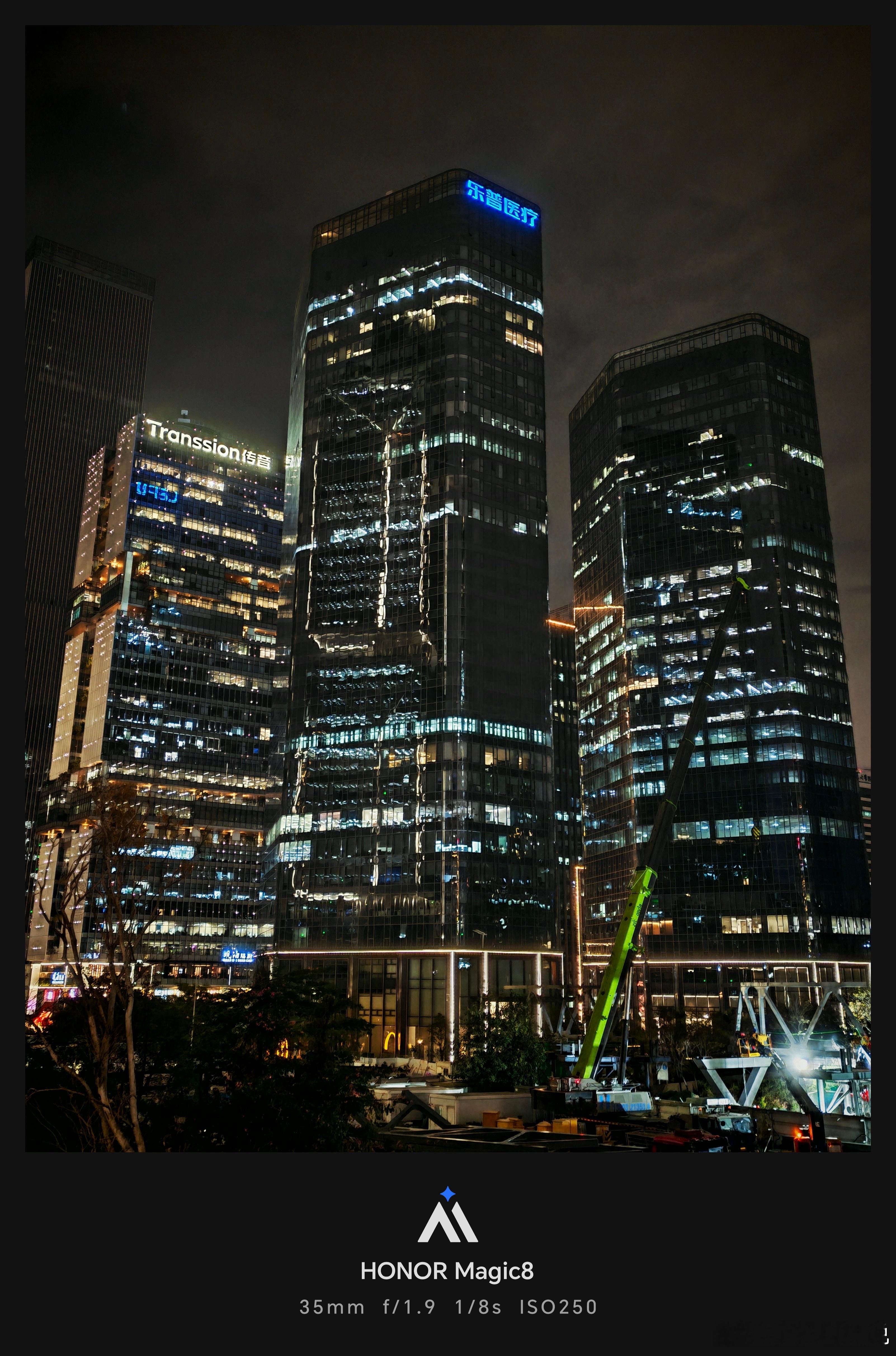 打卡一下万科云城和大疆天空之城,挺赛博朋克。荣耀Magic8夜色里的中国