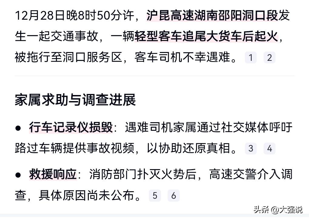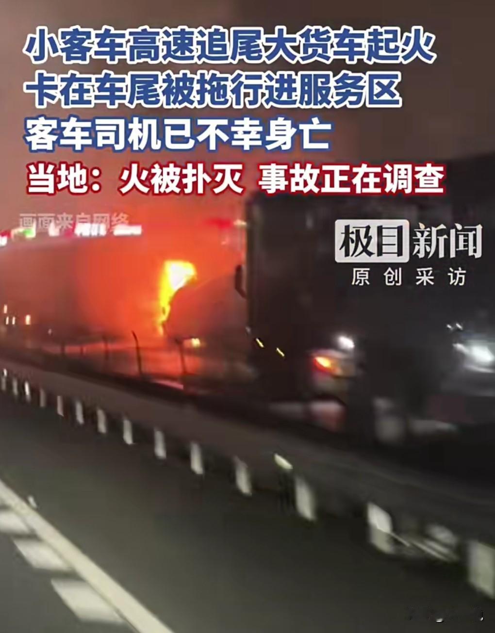 这真的是太悲惨了。 12月28日晚8:50许,沪昆高速湖南邵阳洞口段,发生了一起车祸。 小客车高速追尾大货车起火,真的是太吓人了。 小客车卡在车尾被拖行进服务区。 小车司机不幸身亡。 小车司机的家属向网友求助,希望还原事故真相。 高速路上发生车祸,那真是不敢想象。