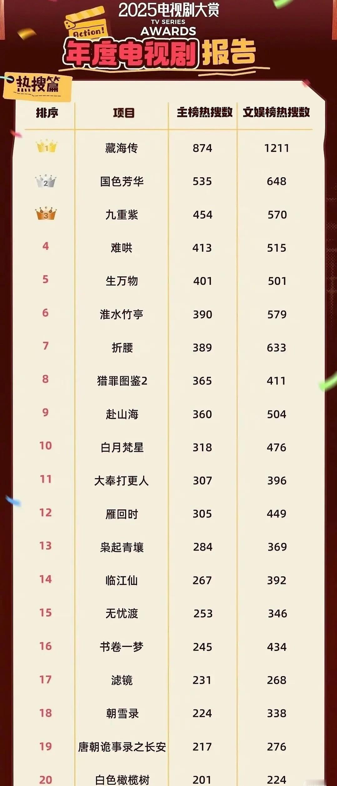 2025年《藏海传》热搜数量吊打其他电视剧,顶流依然是顶流。