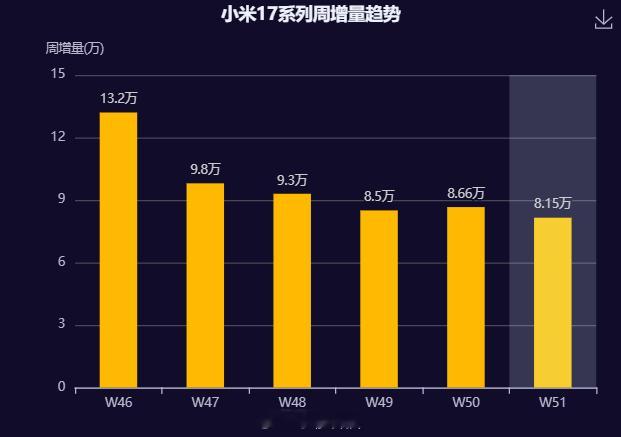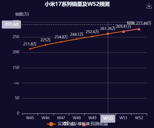 小米17系列(不含Ultra)的销量趋势,开售2个月了,每天保持1万左右的激活量,预测一下W52周总激活量在277万左右,周五来验证 小米17 如果含17 Ultra,W52周总激活量预计在282万左右