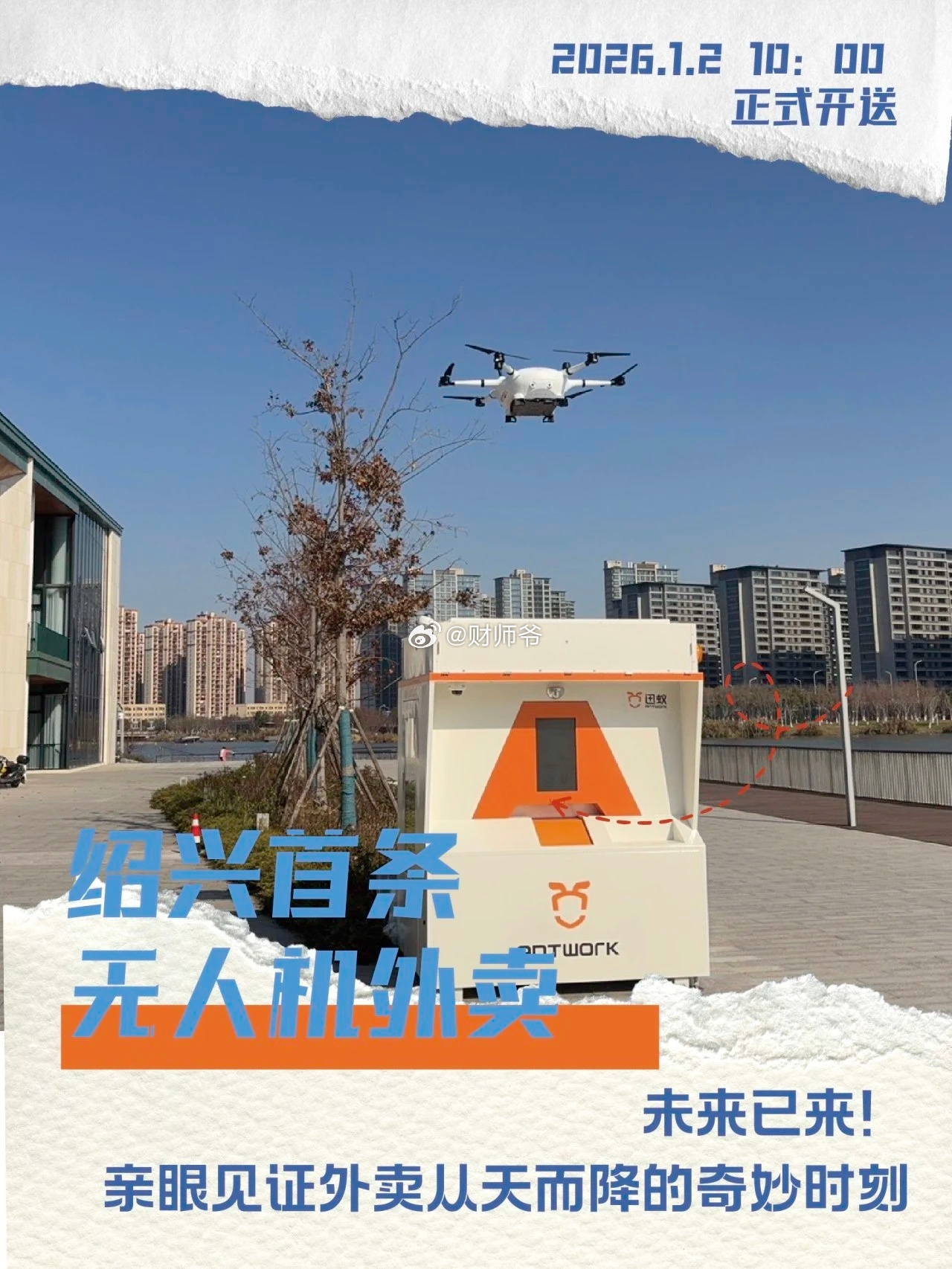 绍兴越城区开通浙江省首条“无人机外卖”通道。