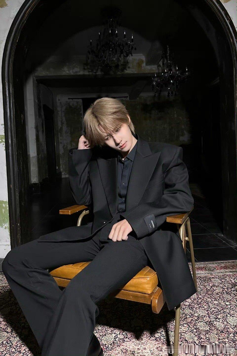 张真源暗调西装大片 金发碎发配黑西装,张真源这禁欲风拉满!