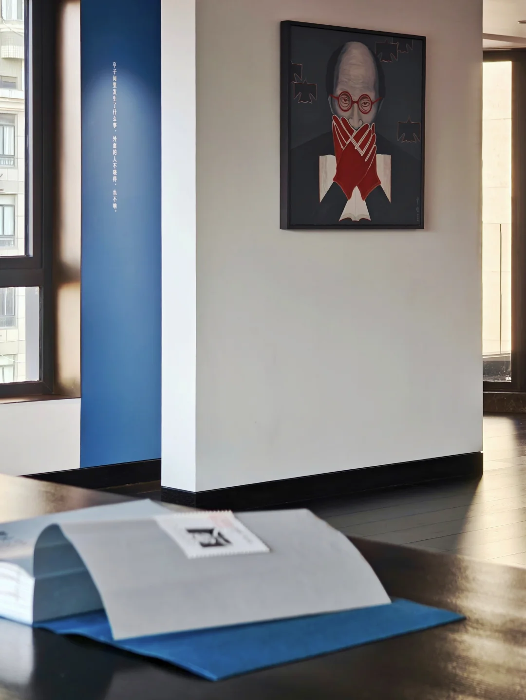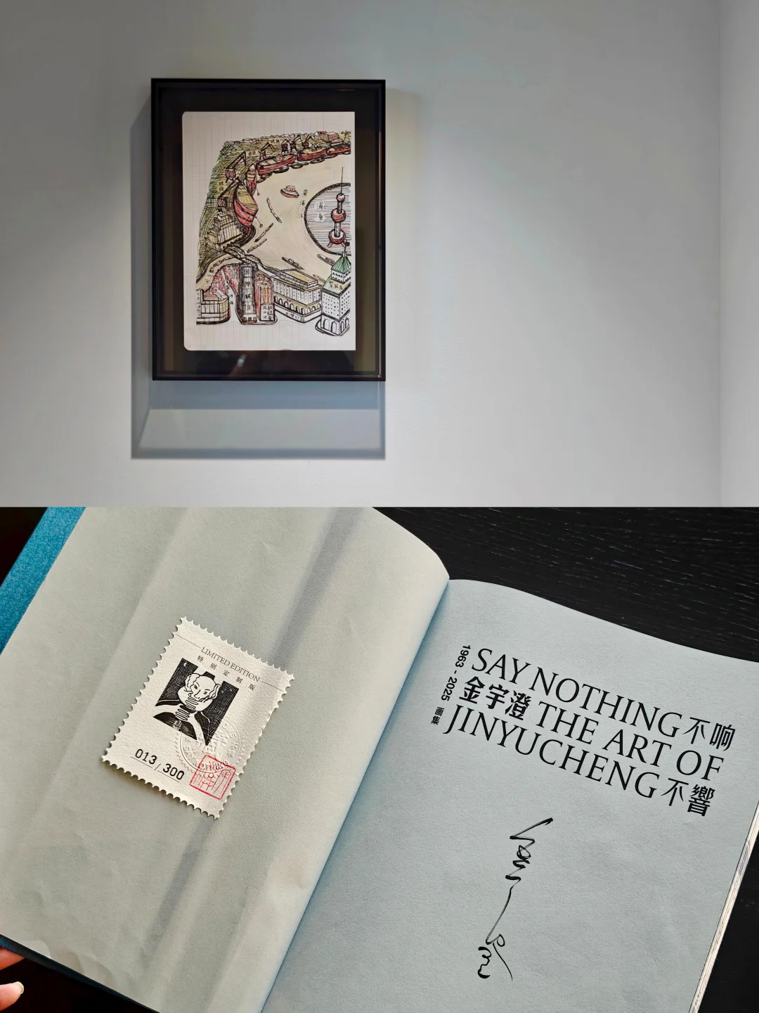 📚长桌上可翻阅的是他的首部中文简体艺术画册《不响》,纪年体收录1963-2025年作品,跨度60年