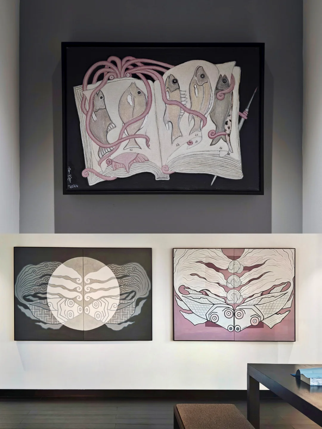 以前金宇澄的画常和《繁花》文字互文,这次彻底独立,纯靠视觉语言讲故事,标志他的艺术创作进入“后繁花”新阶段