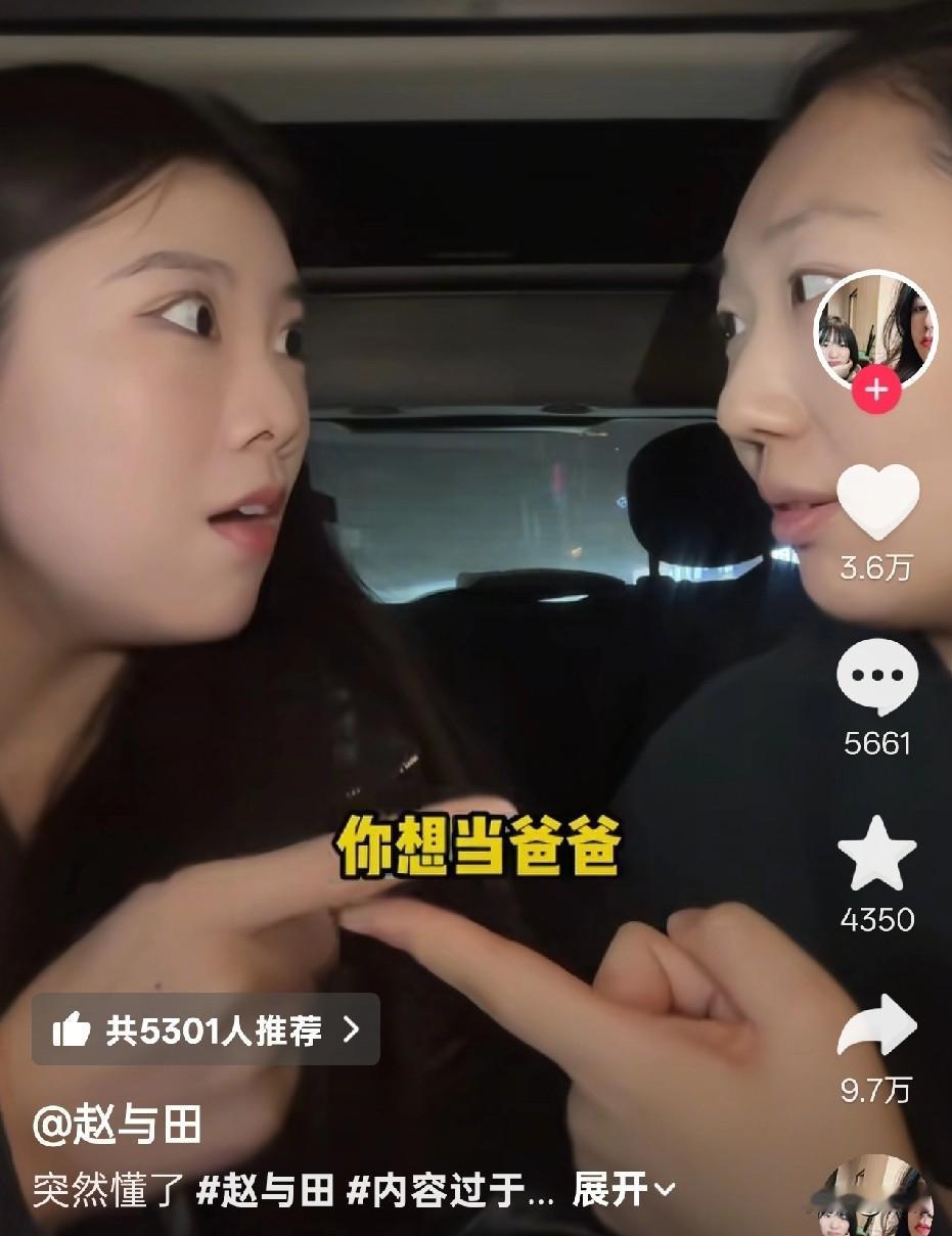 刷到一视频, 听到她不想生,又想要个亲生的孩子的时候,我感觉她真是无理取闹,不可思议,想得美!当另一个说他想当爸爸。我的天,醍醐灌顶,立马合理了! 无痛生娃,还是亲生的。不用耗费多少精力,又不用被束缚,想玩的时候陪娃玩一会。还能跟他姓氏,延续他家的族谱。娃长大了,还能养他。 如果老公生老公养的话,我想要七个葫芦娃! 我老公说:我要是能生我会生。 我说:巧了,我要是男人我也愿意生。
