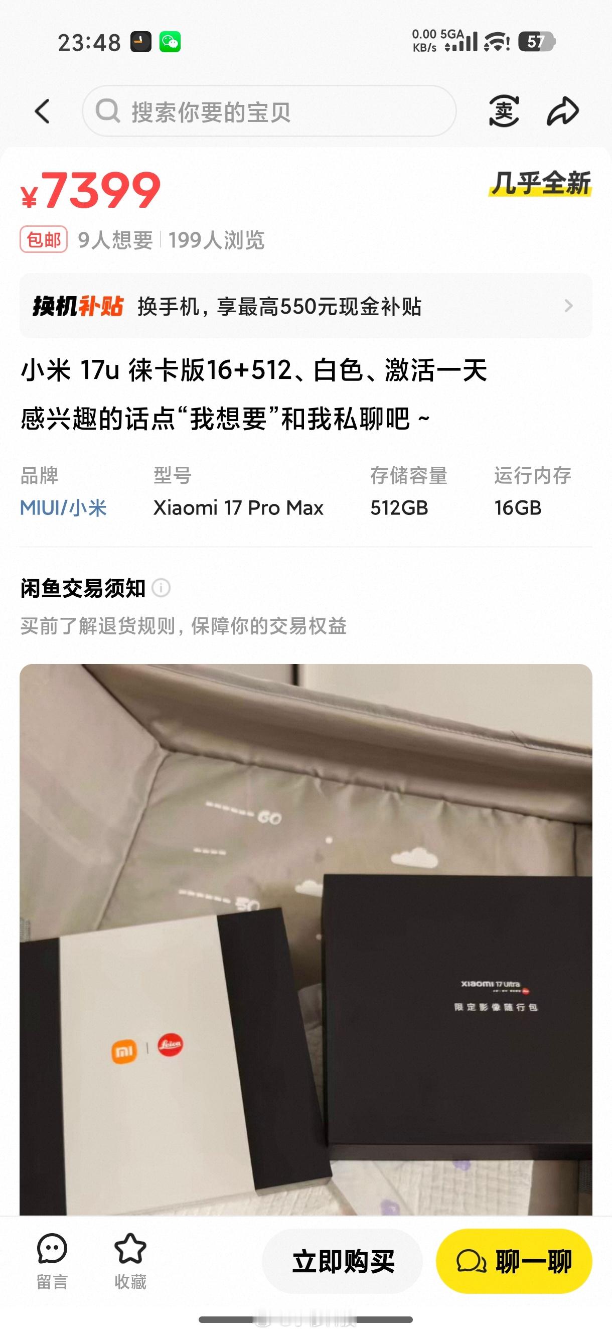 前两天网上一堆人炒小米17 Ultra徕卡版抢不到,在二手市场溢价很高今天看二手的已经快迭了六七百了,砍砍价7200估计就能拿下,这才几天啊,风云变化太快了,感兴趣的米粉可以冲小米17ultra