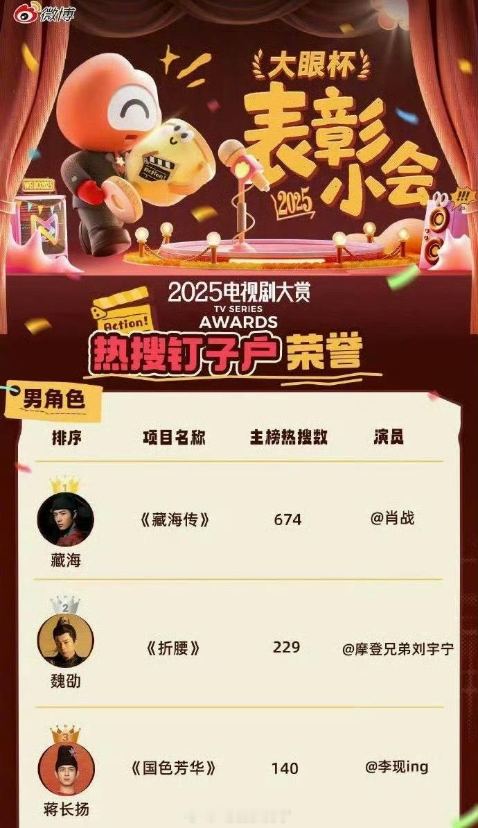 2025年度热搜男角色🈶,大家认同吗?TOP1肖战《藏海传》TOP2刘宇宁《折