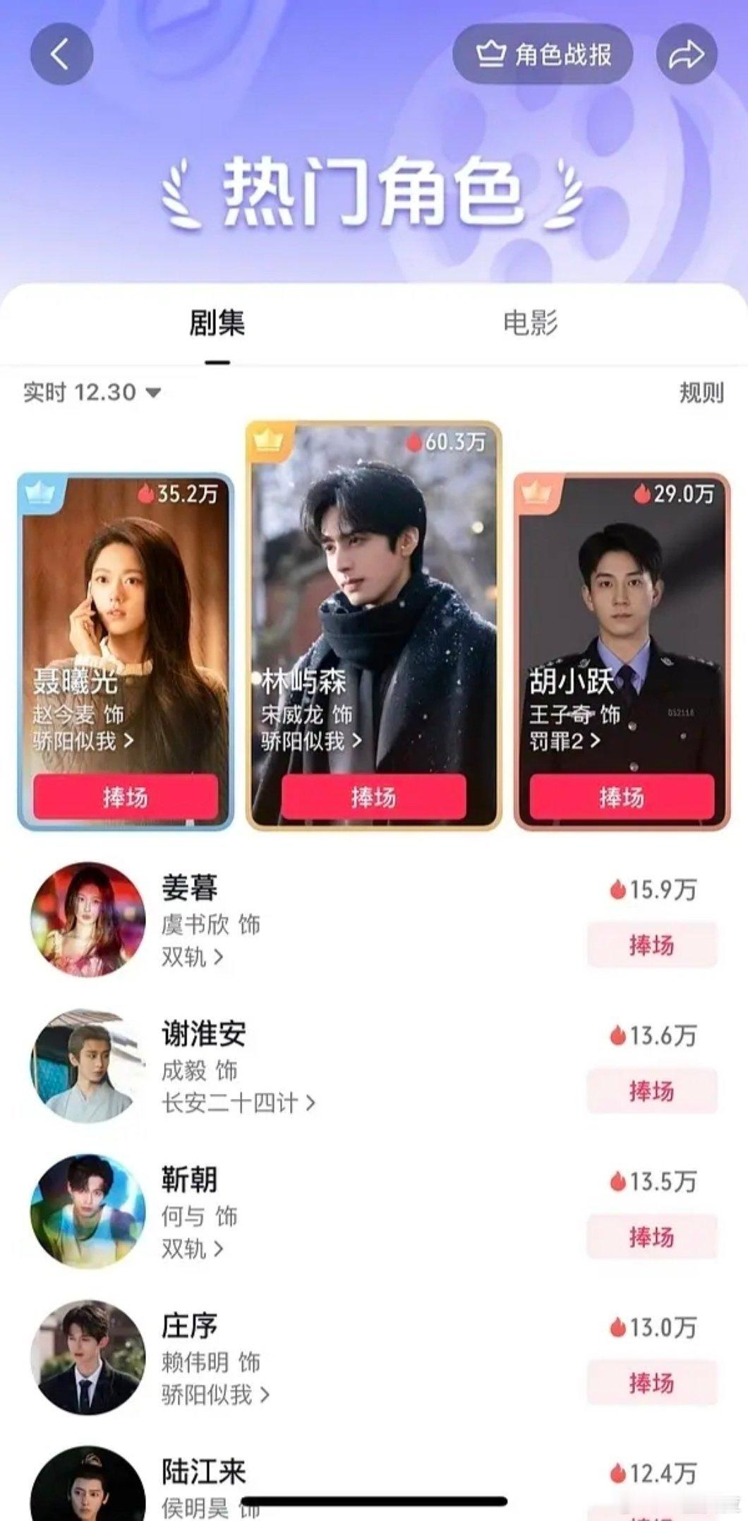 妈耶 黄景瑜被王子奇掀桌了抖音角色热度榜只有王子奇上榜😂😂