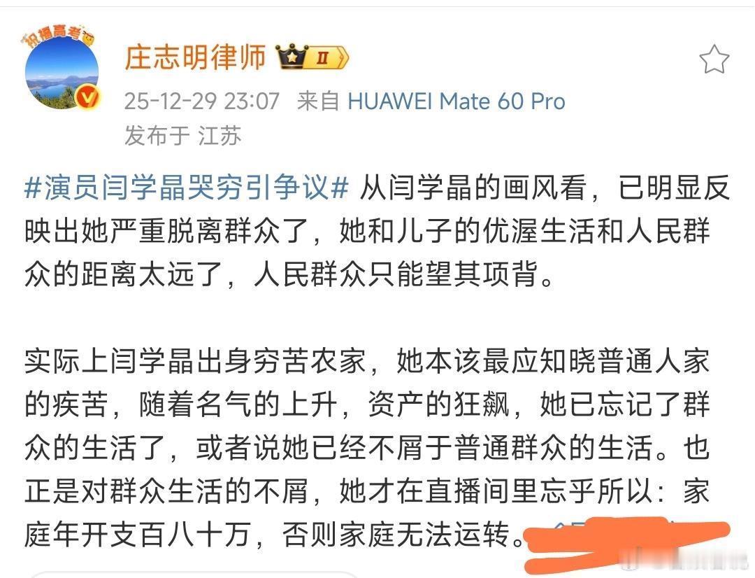 闫学晶直播哭穷这个事,其实也好理解。闫学晶直播说儿子在北京几十万不够花,听着挺离