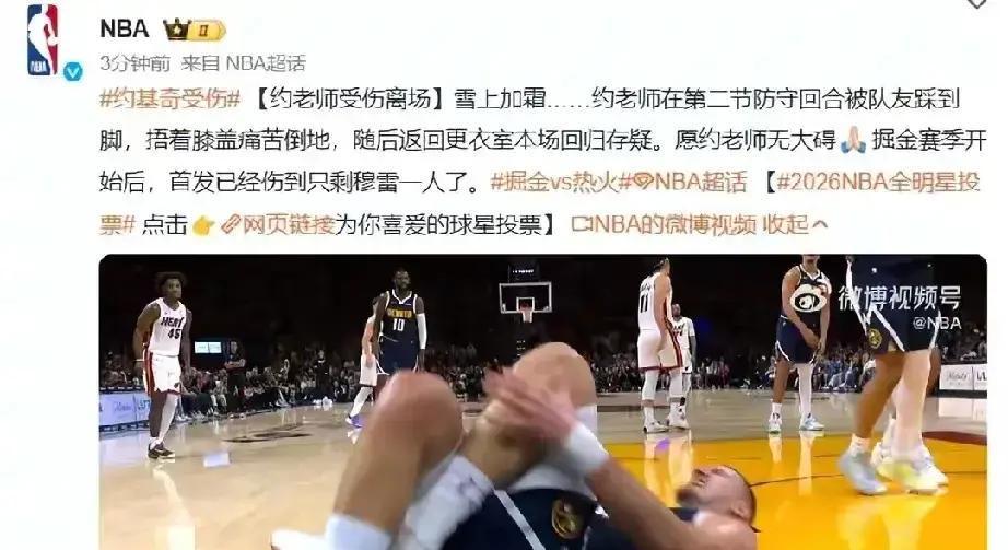 约基奇倒下第1天,掘金就露馅了 膝盖肿成馒头,队医说两周起步。去年举杯那天谁能想到,冠军中锋现在连训练场都进不去。 翻开替补席,场均8分的乔丹,底薪捡来的雷吉,还有新秀沃特森。对面凯尔特人刚补了波尔津吉斯,太阳囤了四个准全明星。掘金呢?为了省税把2029年首轮白送雷霆,现在连个正经替补五号位都没有。 数据不会骗人:约老师场均跑37分钟,中锋里排第二。防守端多跑12%的路程,全是替漏勺队友擦屁股。去年季后赛他还能喘口气,今年场场当爹又当妈。 最扎心的是,这伤不是天灾是人祸。管理层夏天扣扣搜搜,现在报应来了。穆雷刚复出状态不稳,戈登带着手腕伤硬顶,波特的背伤随时复发。这套班底看着眼熟?对,就是去年那套,只是又老了一岁。 有人算过账,约老师缺席的场次,掘金胜率直接掉四成。西部现在狼队掘金雷霆三足鼎立,每输一场都可能掉出前四。去年他们还能靠天赋碾压,今年连活塞都能咬你一口。 说到底,NBA不相信眼泪。省钱的时候爽了,还债的时候疼死你。