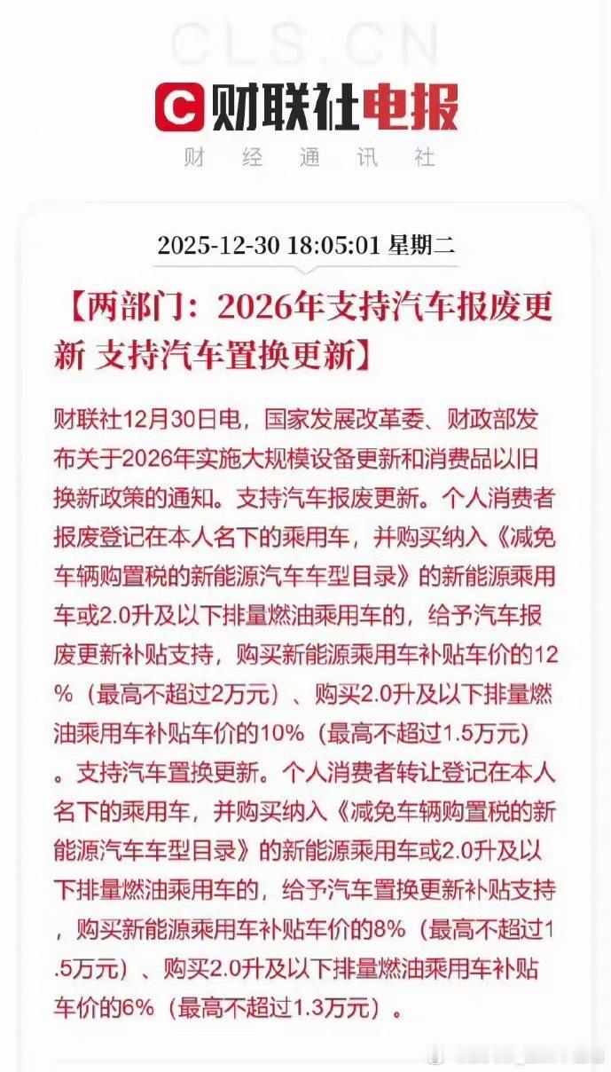 2026年汽车以旧换新政策来了算了一下报废补贴的话,买167000的车差不多能拿