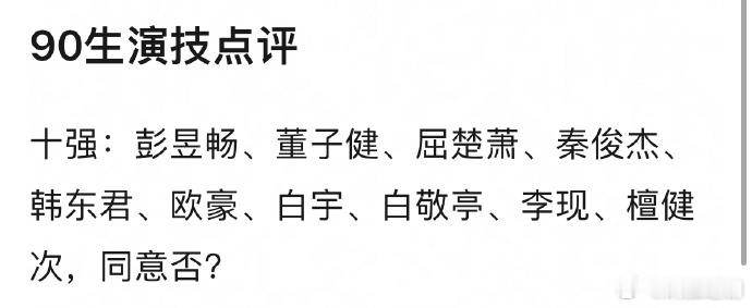 网友评的90生的演技十强,大家认同吗?彭昱畅、董子健、屈楚萧、秦俊杰、韩东君、欧豪、白宇、白敬亭、李现、檀健次