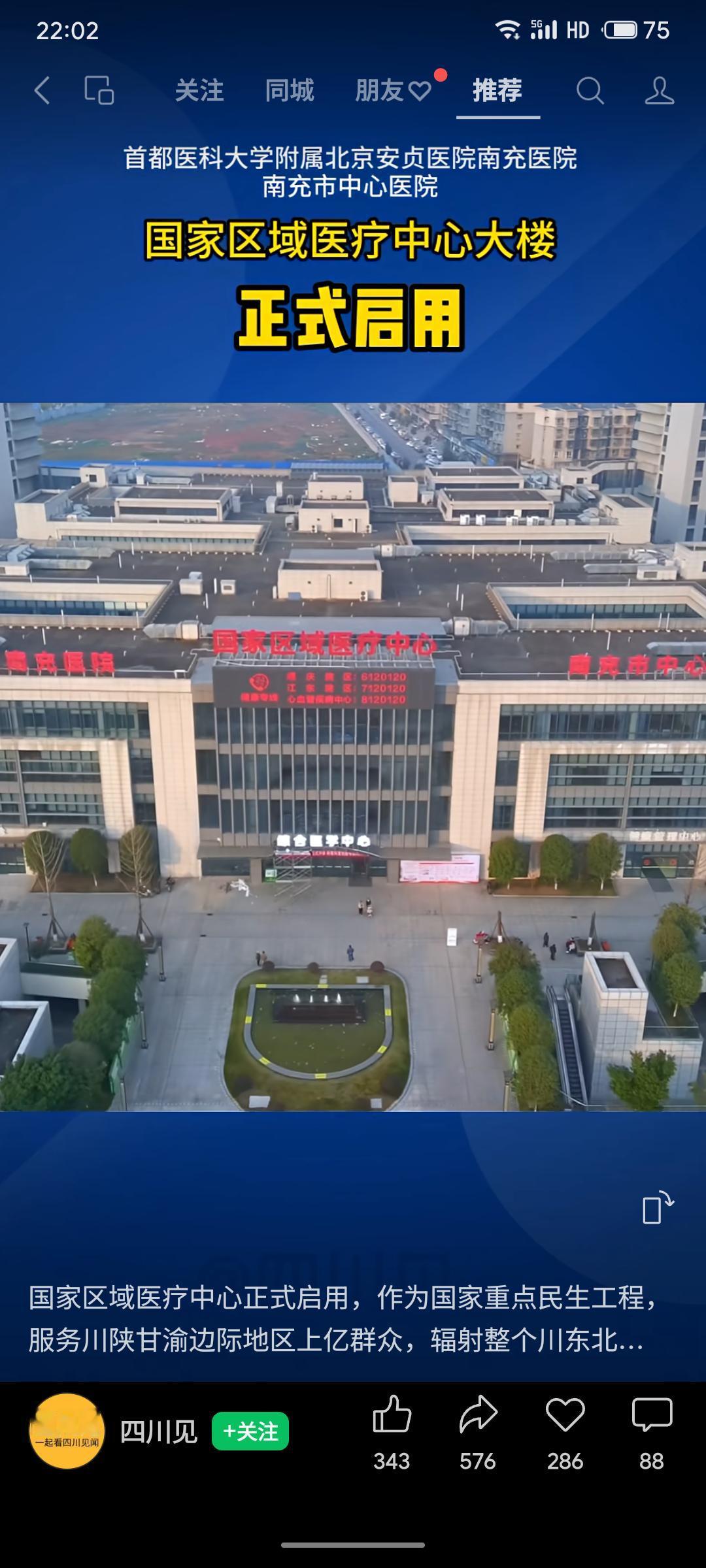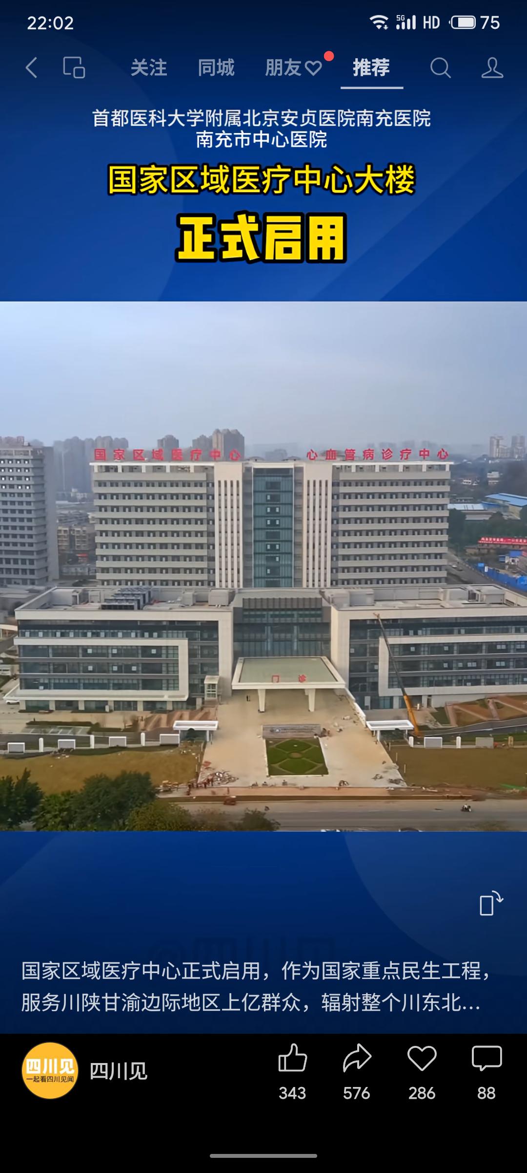 首都医科大学附属北京安贞医院南充医院的国家区域医疗中心大楼正式启用。该中心作为国家重点民生工程,将服务川陕甘渝边际地区上亿群众,提升区域心血管疾病等诊疗能力。