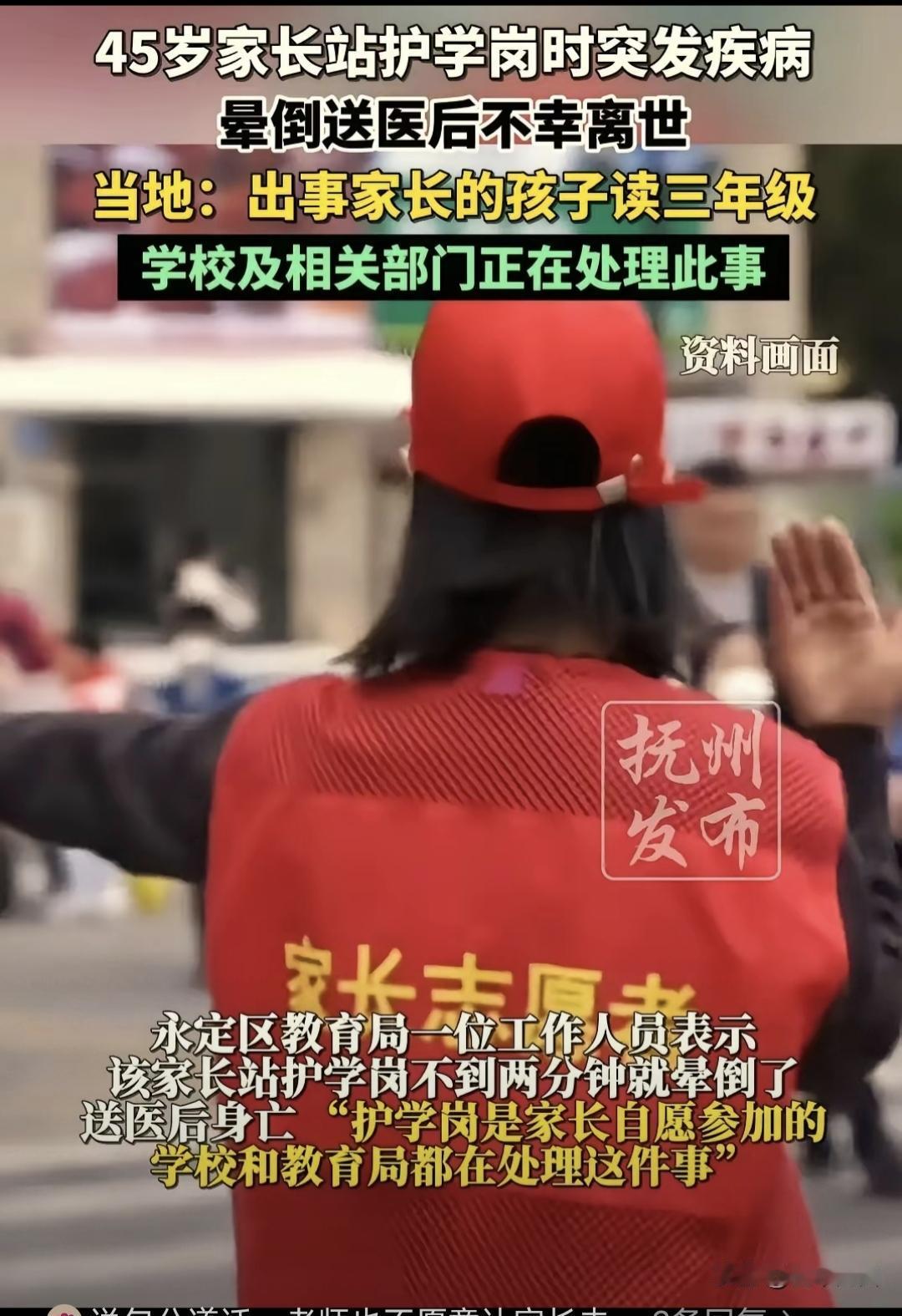 45岁的家长站护学岗突发疾病后晕倒,送医后不治身亡,这件事情引起了广泛关注。究竟该不该让家长排班站护学岗,上学放学期间维护孩子们的安全?这是争论的焦点。现在很多学校都有家长护学岗。尤其是城市里位于交通繁忙路段的学校,穿着红马甲的家长是维持秩序和安全的重要力量。有人认为这应该是交警和学校保安的责任,为什么还需要组织家长参与,为什么不组织老师参与,大家都来讨论一下,有什么更好的解决方案呢?以前教书的时候真的没有家长护学岗,那个时候是什么一种情况呢?
