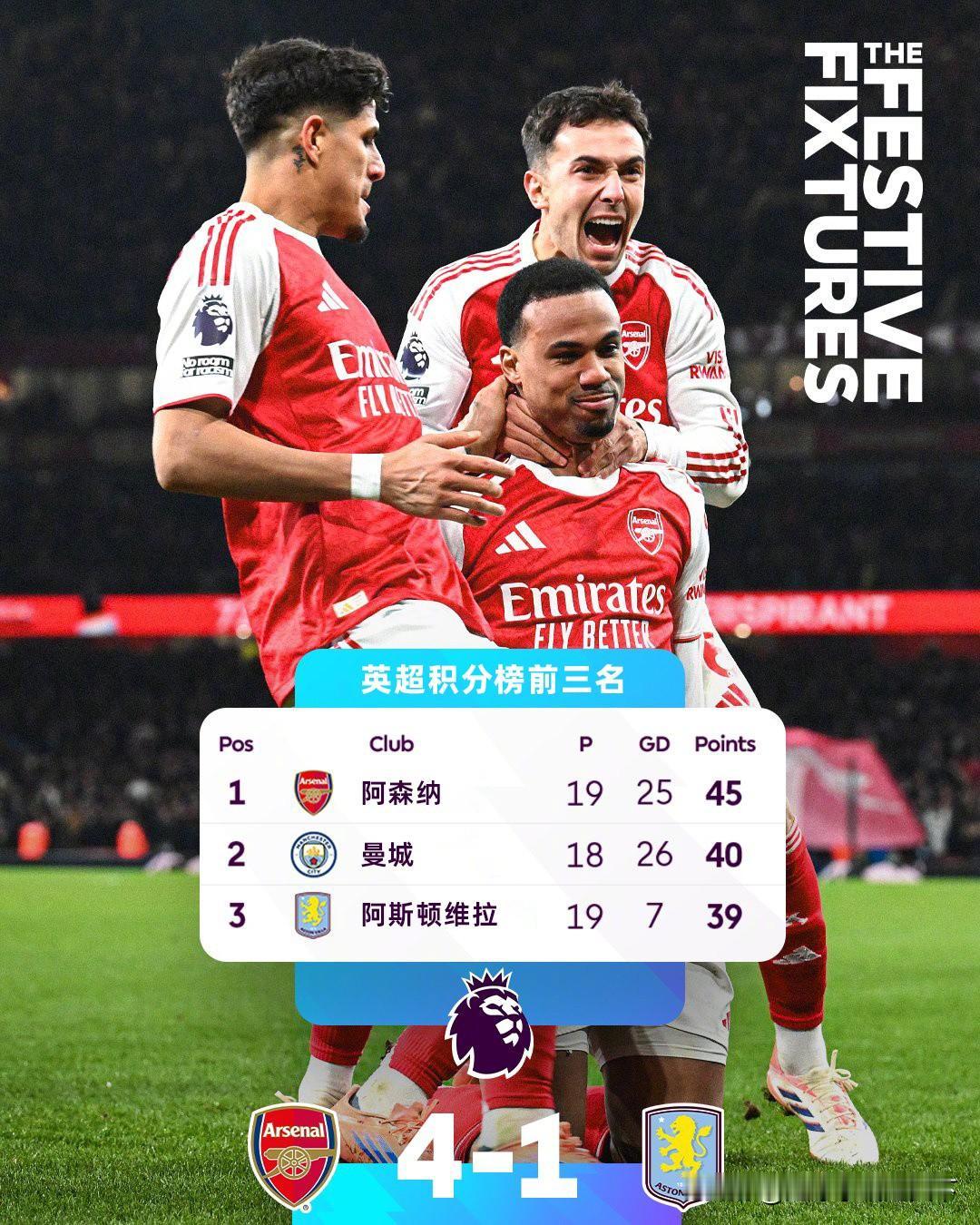 让大家失望了!不出意外,今年的英超冠军应该就是阿森纳的了。不得不说,本赛季的阿森纳气质比之前好多了,真的可能不会再掉链子了。 阿森纳也算是彻底从战平切尔西的阴霾中走出来了,这个月真是磕磕绊绊,让枪迷们提心吊胆的。 今天这场应该是阿森纳这赛季最提气的一场比赛了,虽然整个12月在之前已经拿到6场胜利,但是越发举步维艰,这场迎回加布里埃尔首发,球队精气神又焕然一新。球队又重新回到正轨上来了。 这场厄德高这场大师级表现,没得黑。热苏斯回归后首球,天赋尽显。特罗萨德射术全队第一,起脚稳准狠,不给大马丁一点机会。拉亚终场前的神扑也没保住自己的不失球奖金。萨卡运动战踢的一比吊遭,可以和马杜埃凯轮换轮换。就是4比0领先也没看到恩瓦内里上场有点可惜。