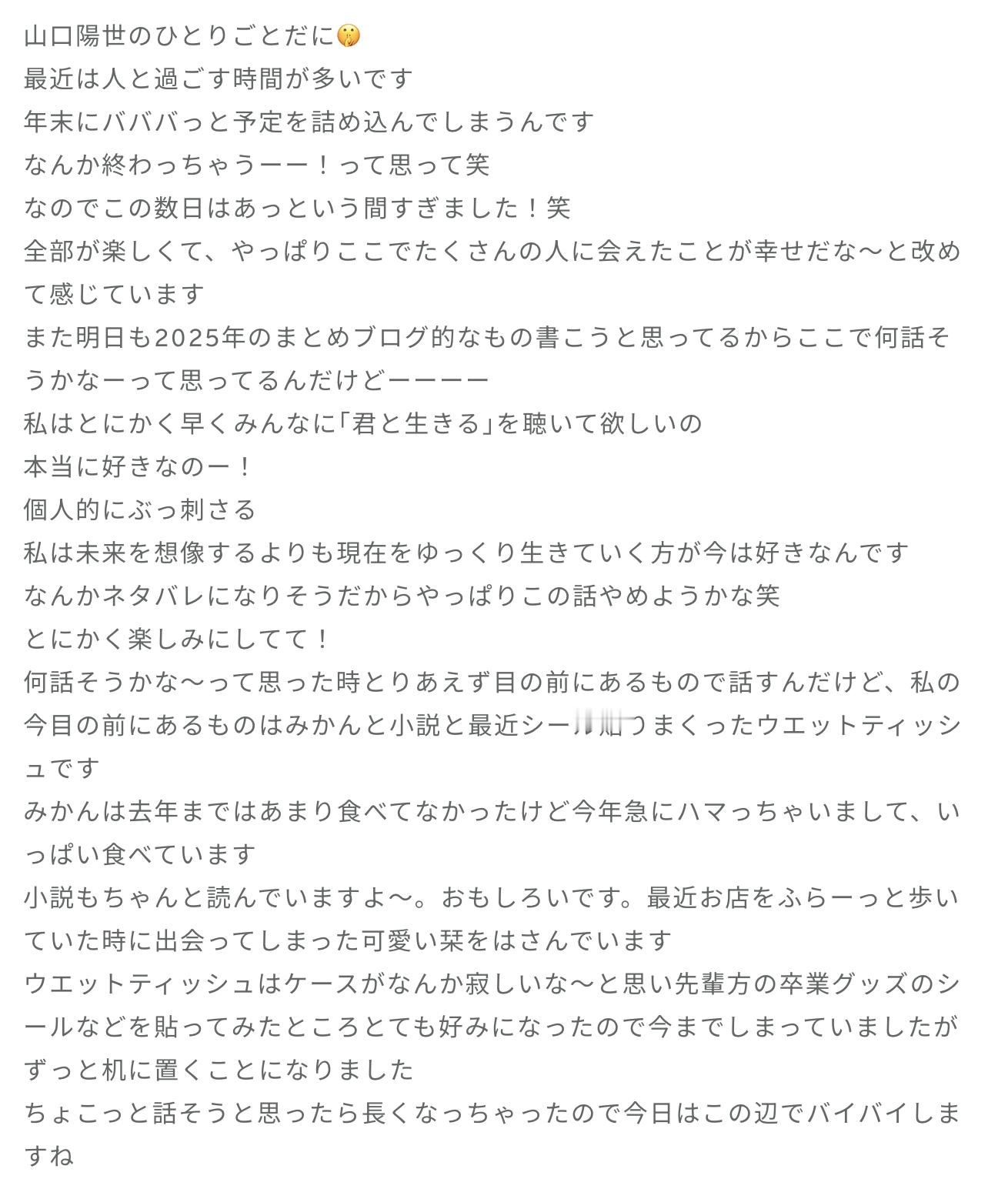 はるよ「前回ブログを書いたのは、クリスマスイブです!クリスマス一人で過ごすかな〜と思っていたのですが、ひなのちゃんがお家に来てくれて一緒に過ごしました〜〜イベントごとが私は大好きなので風船をふくらましたり飾り付けもしました🎈ひなのちゃん楽しい時間をありがとうっっ 片付けるのが寂しくてまだ家はそのままです。最近の自撮りたちを載せます。前髪分けるのにハマってる。緑好きです。最近クレーンゲームしたら取れて一番見えるところに置いてるっ ずっと育てているアロマティカスちゃんの横に置きました☺️🌱」