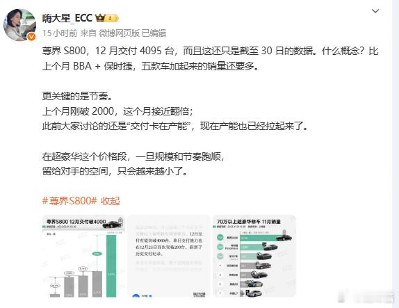 尊界S800 这12月份交付四千多台?这个价位的车这个交付量真的太夸张了
