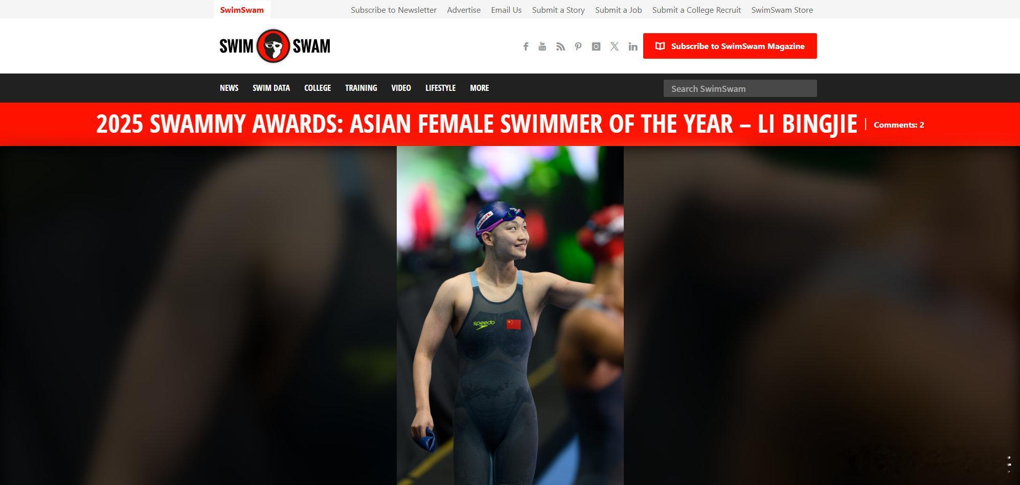 外媒评覃海洋李冰洁亚洲年度最佳 知名游泳运动专业媒体SwimSwam评选2025亚洲最佳游泳选手,覃海洋和李冰洁获奖期待中国游泳梦之队2026再创辉煌覃海洋李冰洁