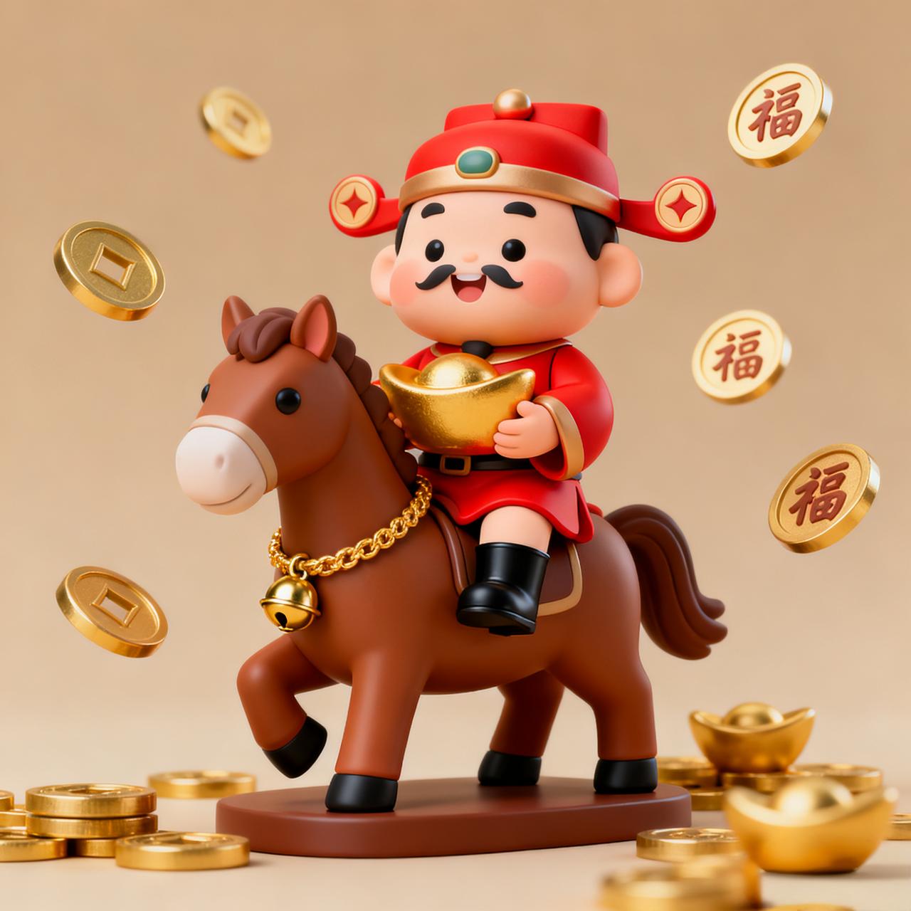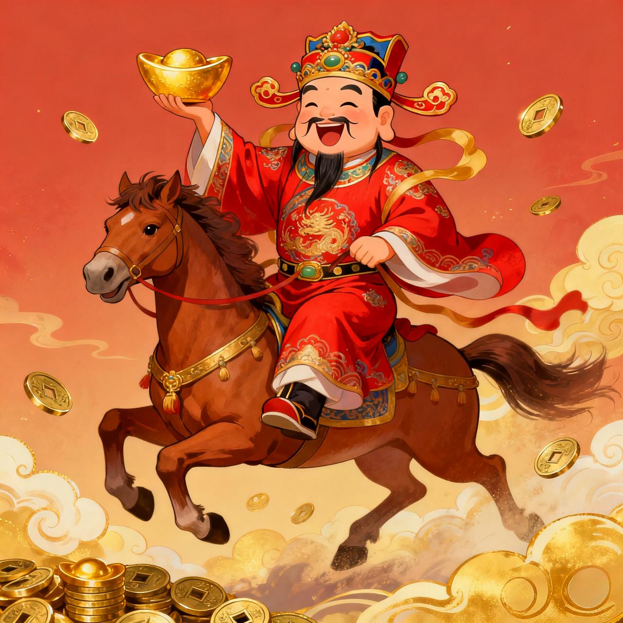 🎉🐎 2026财神爷骑马驾到! 金鞍踏福,红绸裹财,马年纳福启新程! 马到成功迎财运!愿财神爷的马蹄声,踏来八方财源,撞开富贵大门,让你新岁钱包鼓鼓、事业步步高,小财大财滚滚来,横财偏财找上门! 日日见喜、事事顺心,家人安康、好运爆棚! 下联:月月平平安安。求上联