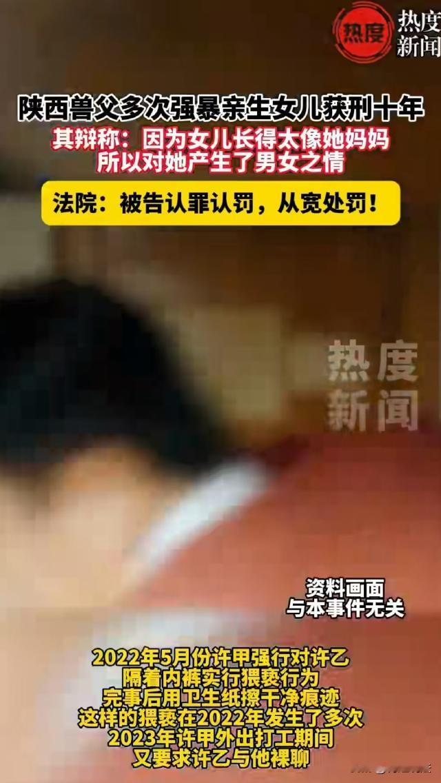 陕西山阳,男子和女友未婚同居生下一个女儿,女儿3个多月时女友离家出走,女儿长大后,男子竟对女儿做出禽兽之举,女儿以死相拼才未让其得逞。可此后,男子又多次对做出过分举动,还对女儿提出非分要求,女儿忍无可忍报了警。男子却辩解称,自己对女儿实施这种行为,是因为女儿越长越像她母亲,孩子母亲也有责任。 据热度新闻、裁判文书网等报道,2005年,许某在西安认识了一名女子,两人相恋并同居。 2008年,许某的女友生下一个女儿,可是,因两人之间存在矛盾,女儿刚3个多月,女友就离家出走了。 此后,许某又是当爹又是当妈,辛辛苦苦拉扯女儿小许长大。 按理说,父女俩相依为命,应该感情很好,可父女情在2021年变了质。 据许某交代,女儿长大后,越来越像她的母亲,许某看着小许那张和女友酷似的脸,逐渐对她产生了不一样的感情。 2021年,许某带小许回老家祭祖,期间,看着小许,许某再也忍不住了,准备对小许实施行动。 小许吓坏了,从旁边摸到一把水果刀,抵在自己脖子上威胁,许某怕真的闹出事,这才罢休。 第一次虽然没成功,但许某心里罪恶的种子已经发芽。 随后,许某老实了一段时间,小许也放松了警惕,可2022年5月,许某竟然再次对小许动手。 这次,吴某隔着内裤对小许实施了猥亵,完事后擦干净痕迹离开了。 随后,许某尝到了甜头,隔一段时间就会对小许动手,虽然没有发生实际的关系,但仍给小许带来了巨大的心理伤 害。 2023年许某外出打工,小许猛松一口气,但许某虽然不在家,却对小许提出其他要求。 许某经常要求小许和他视频,但这并非为了增进父女感情,而是要求小许和他裸 聊。 6月份,许某回家了一趟,还在家里装了监控,但是这一切,小许并不知情。 几天后,小许和别人聊天,说想离家出走。 小许不知道的是,这一切都被许某从监控里看得一清二楚。 许某立即赶回家,将小许暴打了一顿,当天晚上,许某还惩罚似的,对小许实施了多次 猥 亵。 小许再也无法忍受这样的生活,6月28日小许报了警,当天,许某被传唤到案。 很快,本案进入了公诉阶段,庭审时,许某竟然厚颜无耻地说,自己没有犯罪记录,对女儿下手,是因为她长得和她母亲实在太像了,但是他对女儿保留了一定的良知底线。 另外,女儿的亲生母亲知道自己的品行,还将孩子丢给他,女儿的亲生母亲也有一定责任,所以请求对自己轻判。 一审认为,许某丧失人伦底线,给小许带来了不可磨灭的伤害,但因其认罪认罚,可从轻处罚,判许某犯强 奸 罪,判处其有期徒刑10年。 那么问题来了,许某对小许并未真的实施侵害行为,为什么他会被判强 奸 罪,而不是猥 亵 罪呢? 《刑法》第二百三十六条规定,以暴力、胁迫或者其他手段强 奸 妇女的,构成强 奸 罪。 强 奸 罪的本质特征是违背妇女意志,使用暴力、胁迫或者其他手段,强行与妇女发生亲密关系的行为。 这里的“其他手段”包括使妇女处于不能反抗、不敢反抗或者不知反抗的状态。 许某在整个侵害过程中,多次表现出想强行与小许发生真实关系的主观故意。 2021年,许某带小许回老家祭祖时,就准备对小许实施侵犯,小许以死相拼才使许某罢休。 这表明许某有强行与小许发生亲密行为的意图,只是由于小许的反抗而未能得逞,此为犯罪未遂。 2022年5月及之后,许某虽未与小许发生实际的关系,但他对小许实施了猥 亵 行为。 这些猥 亵行为是许某 强 奸意图的逐步试探和推进,是整个强 奸 犯 罪过程中的一部分。 许某在实施猥 亵行为时,其目的并非单纯的猥 亵,而是为最终实现 强 奸 创造条件,符合强 奸 罪中“其他手段”的特征。 猥 亵 罪是指以刺激或满足欲望为目的,用发 生 关 系以外的方法实施的淫 秽行为,而强 奸 罪是以与妇女发生 关系为目的。 许某的行为并非单纯的寻求刺激的猥 亵,他的一系列行为围绕着强行与小许发生 关系展开,主观故意明确指向强 奸。 许某虽未完成侵犯行为,但根据《刑法》规定,已经着手实行犯罪,由于犯罪分子意志以外的原因而未得逞的,是犯罪未遂。对于未遂犯,可以比照既遂犯从轻或者减轻处罚。 因此,一审在量刑时,考虑到许某的犯罪情节等因素,仍以强 奸 罪判处了许某十年有期徒刑。
