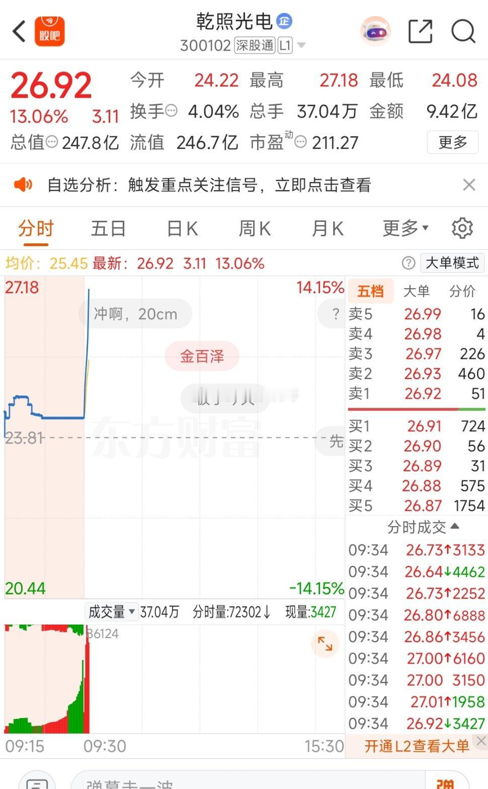 $乾照光电sz300102$起飞!老铁们觉得能涨停吗!
