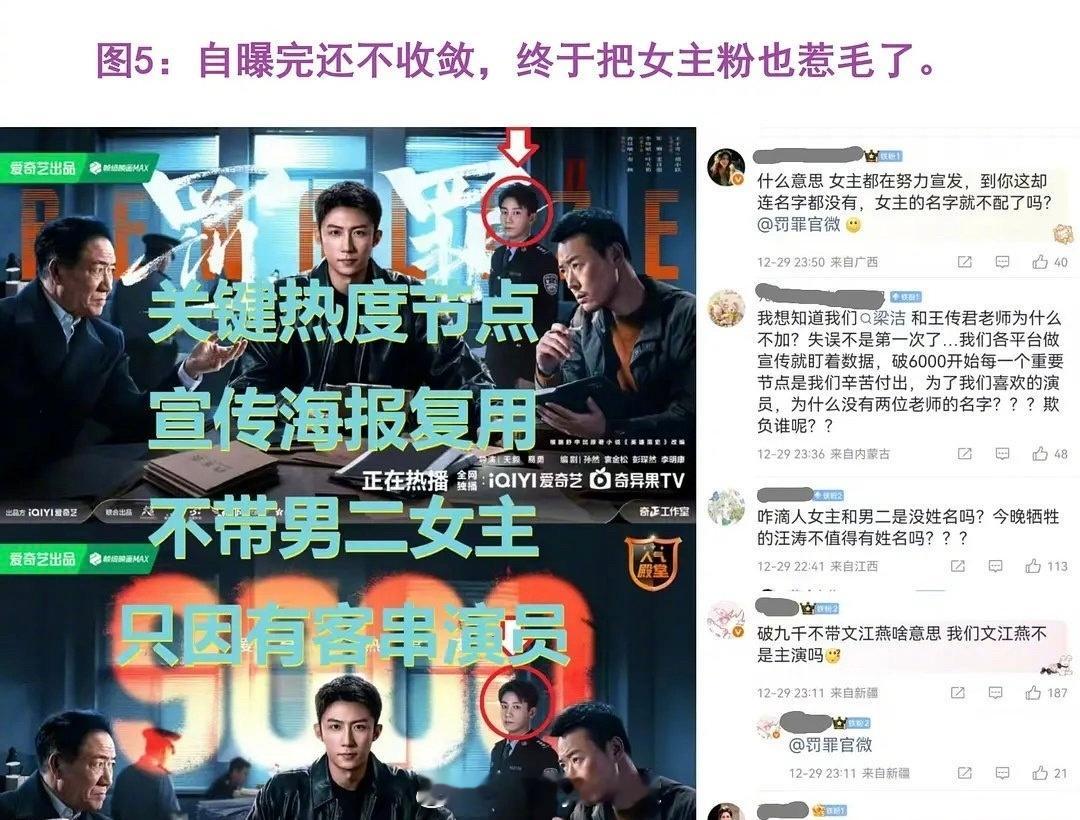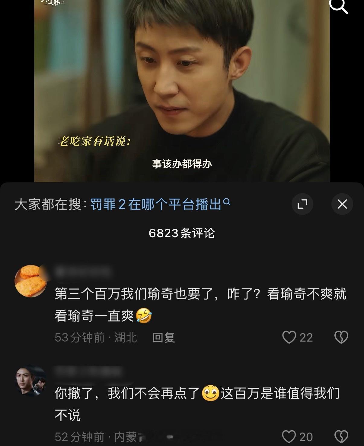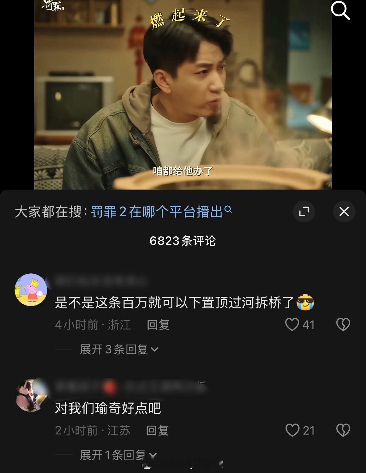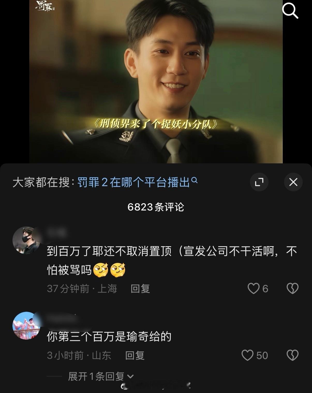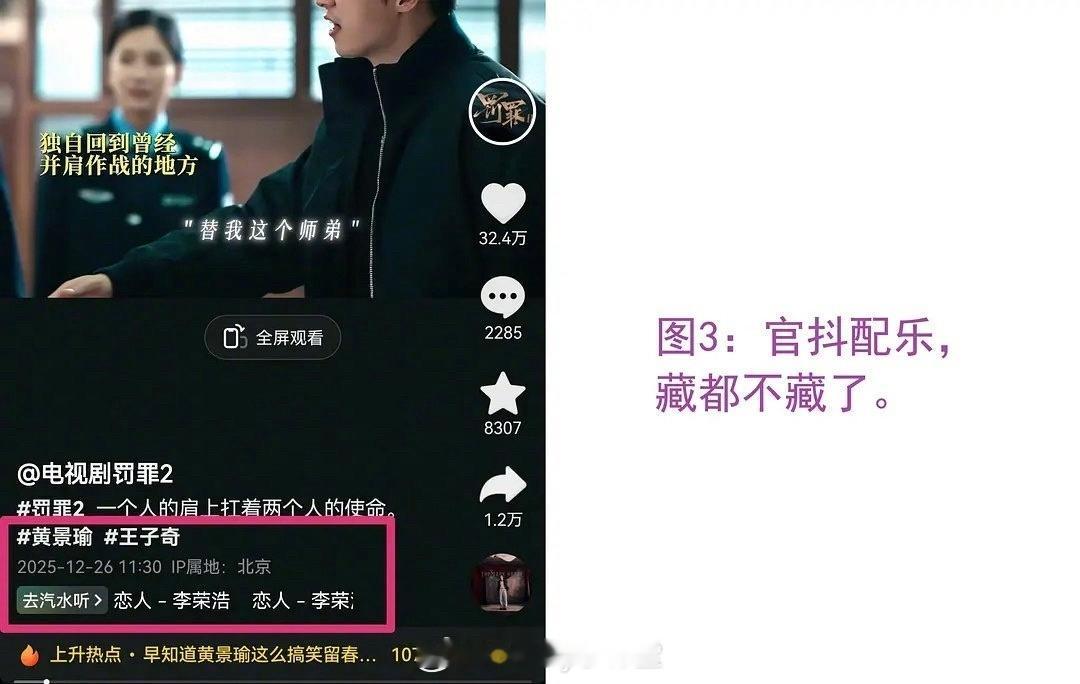 罚罪2近期宣发引发争议,首先男主是黄景瑜,男配王传君,女主梁洁,王子奇是客串并且出场戏份极少。但是官抖开播第一天放的宣传就是黄景瑜和王子奇的CP向剪辑视频,黄景瑜粉丝对此表达不满,但官抖选择无视且置顶了该视频!之后官抖接连放了几段宣发剪辑,文案只带黄景瑜、王子奇的名字,给抖人嗑爽了哈哈哈哈哈哈哈哈!别说你还真别说,官抖热度最高的几条全是“瑜奇”