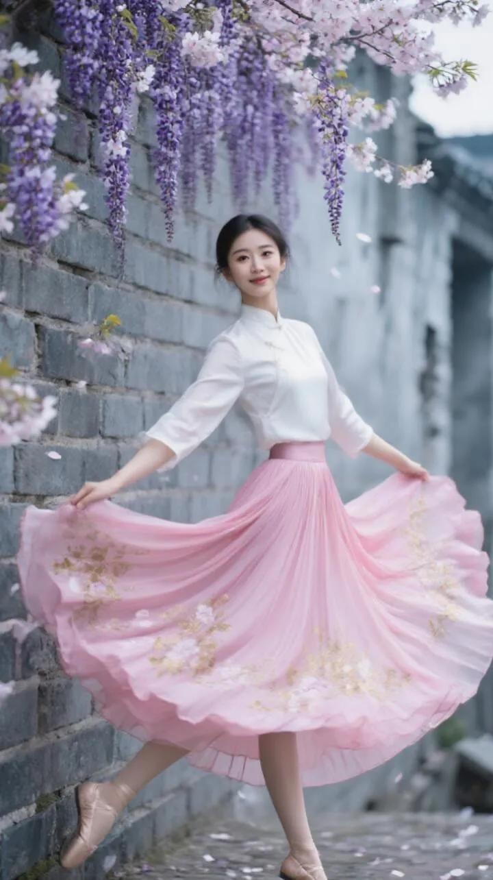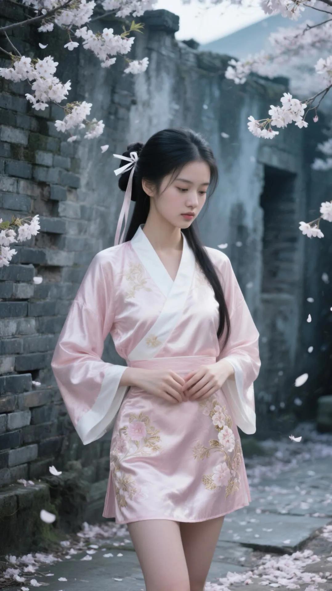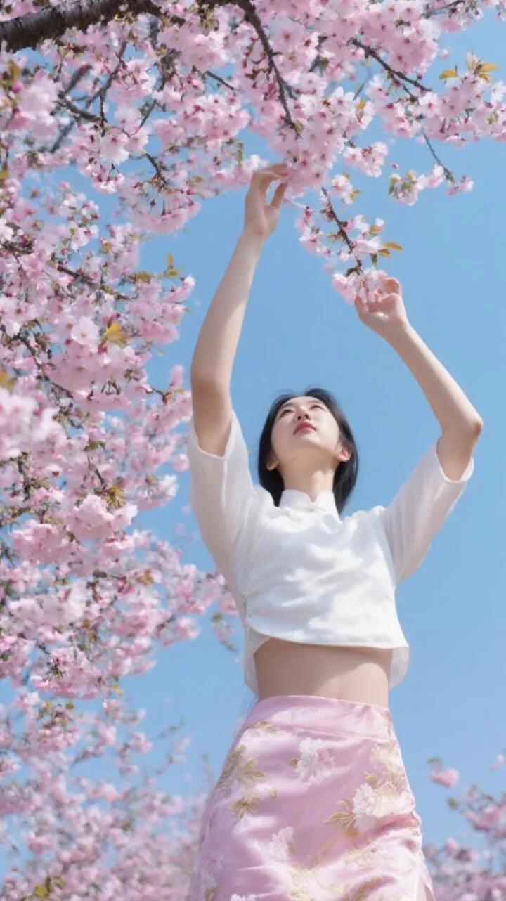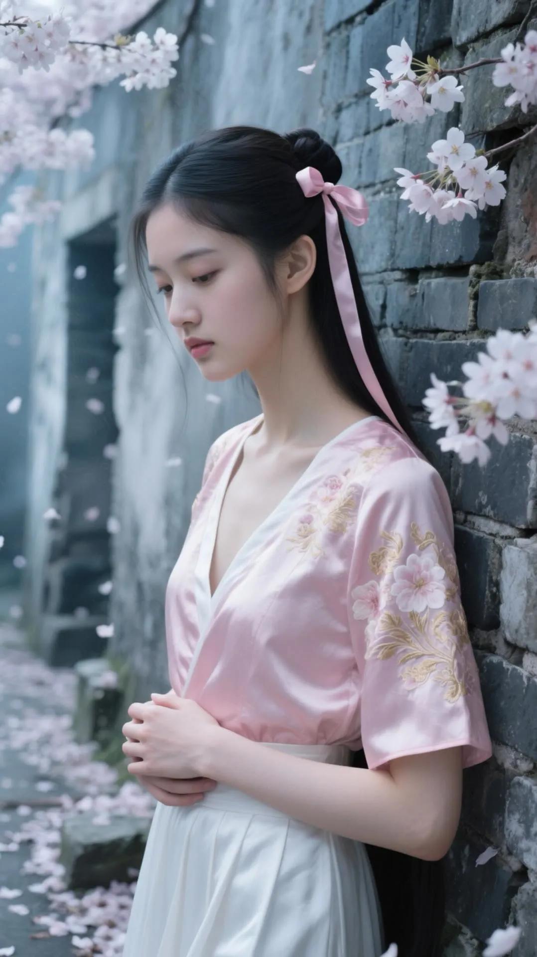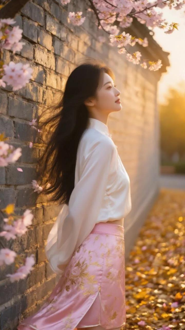 古风少女与樱花墙的浪漫邂逅🌸✨